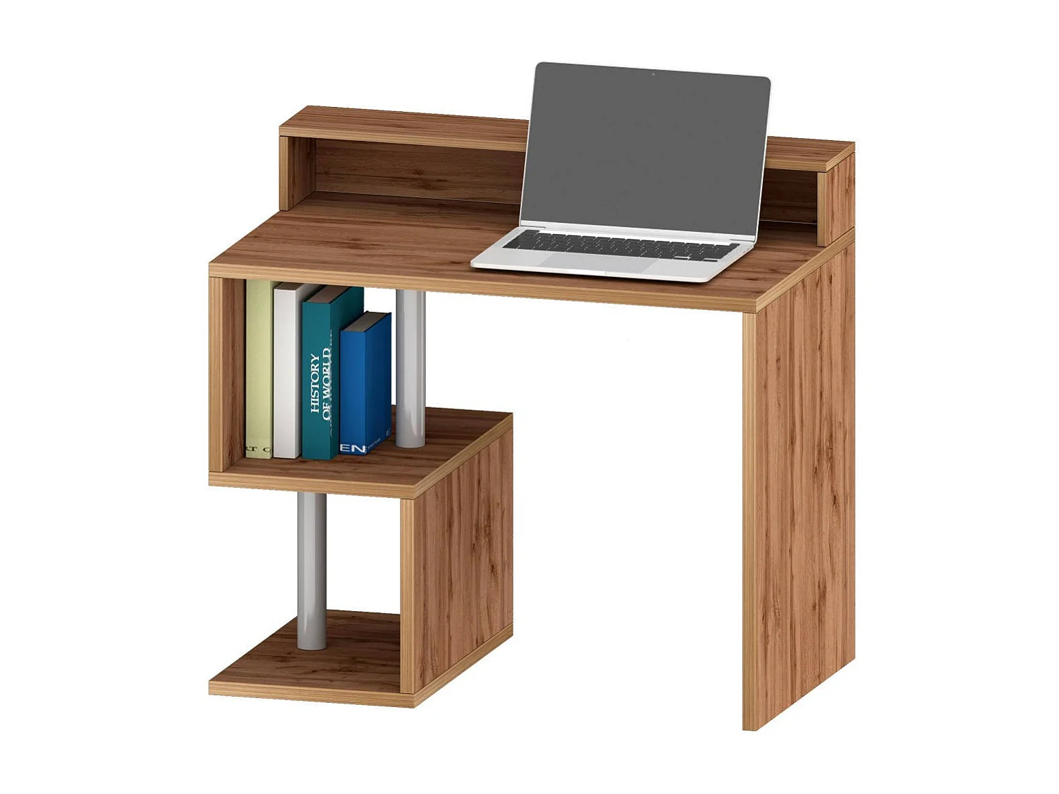 Bureau Silvio, Bureau linéaire avec étagères de rangement, Bureau polyvalent avec plateau, 100x50h93 cm, Chêne