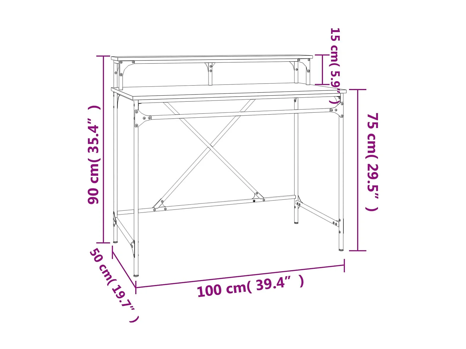 Fole Bureau sonoma gris 100x50x90 cm bois d'ingénierie et fer