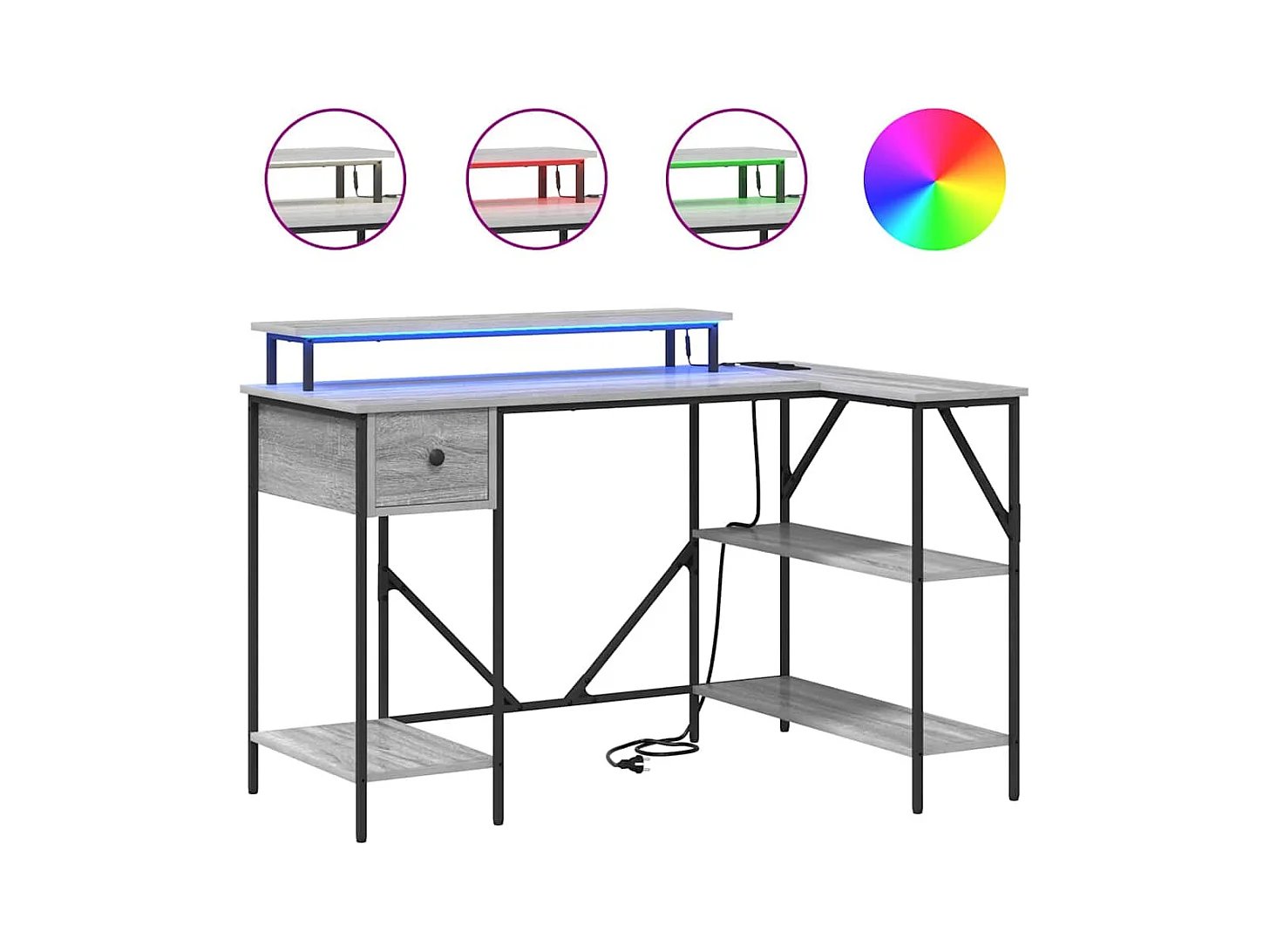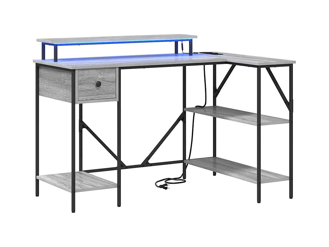 Bureau et lumières LED sonoma gris 120x55x91cm bois ingénierie
