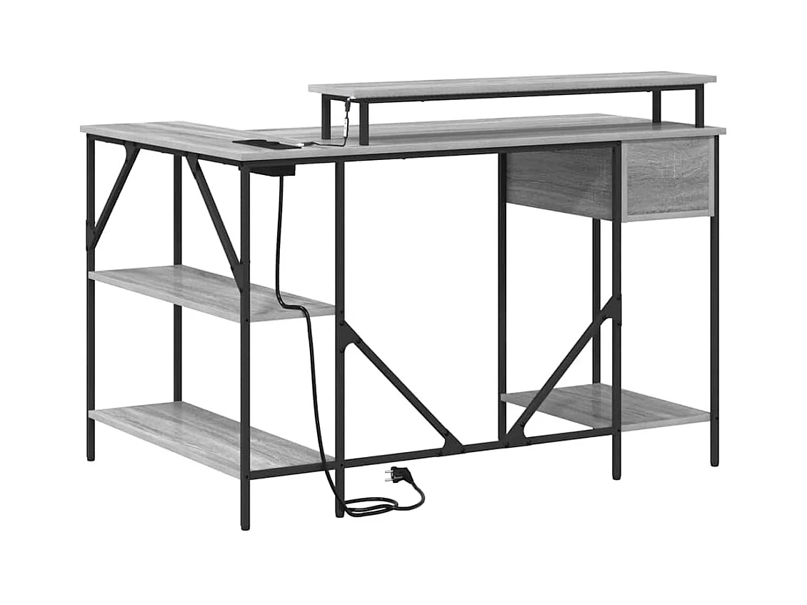 Bureau et lumières LED sonoma gris 140x55x91 cm bois ingénierie