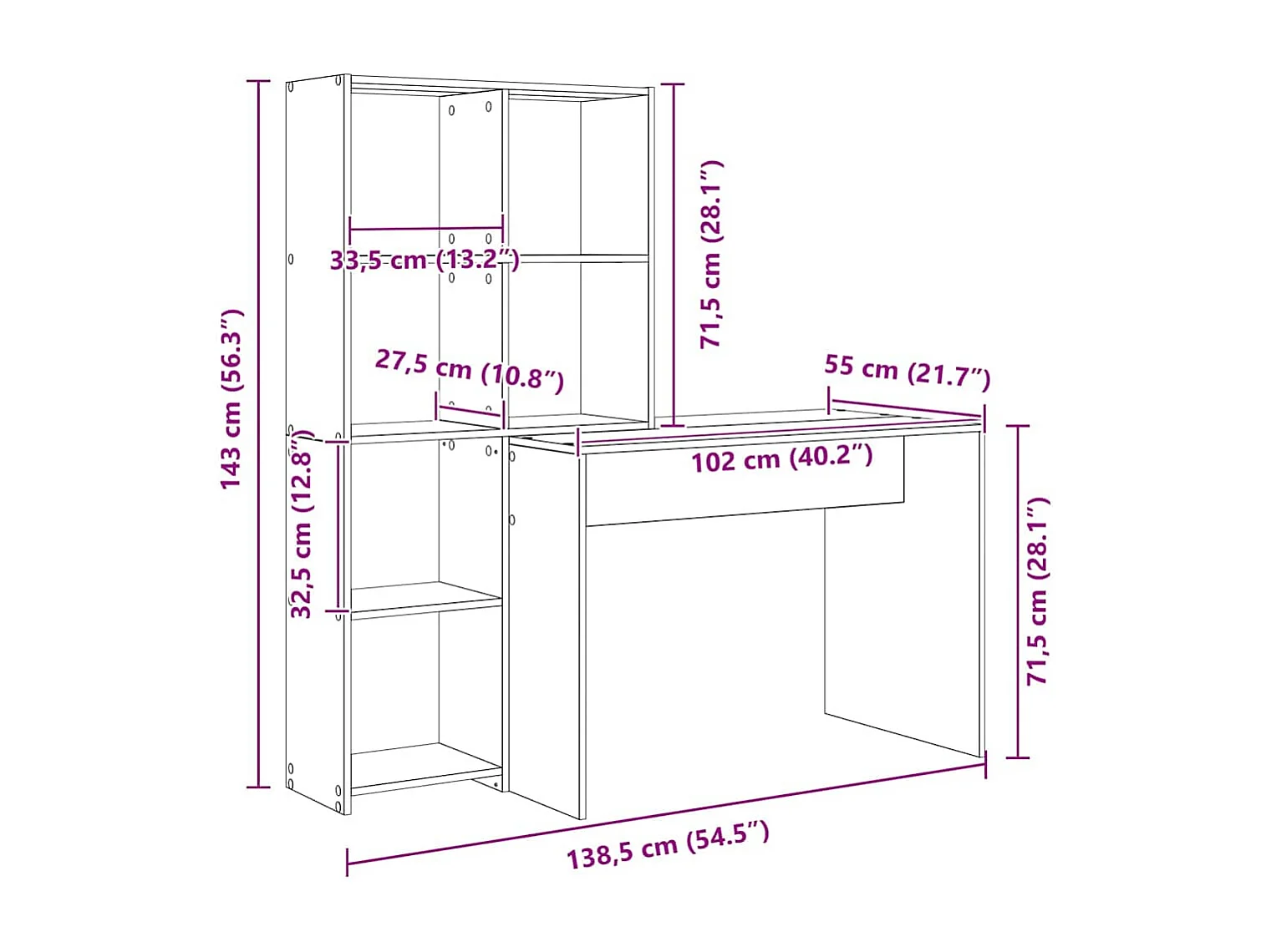 Bureau Sonoma gris 138.5 x 55 x 143 cm Bois d'ingénierie