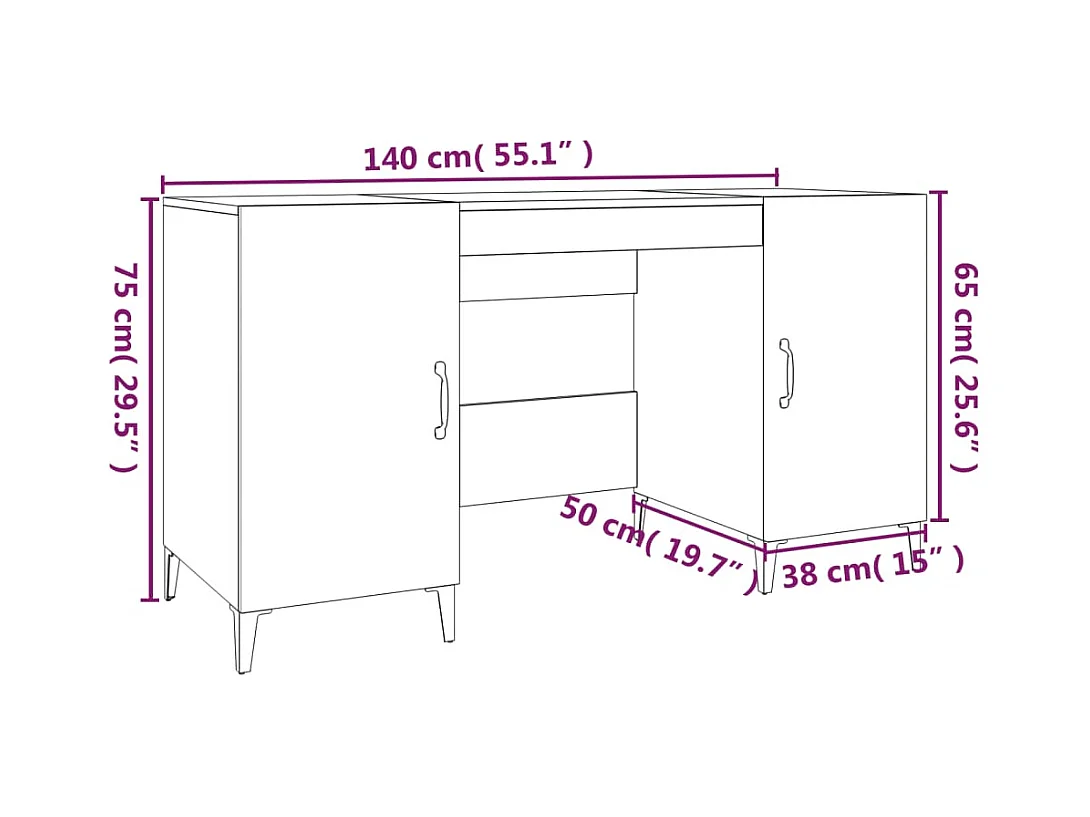 Bureau table poste de bois blanche 140 x 50 x 75 cm 02_0023541