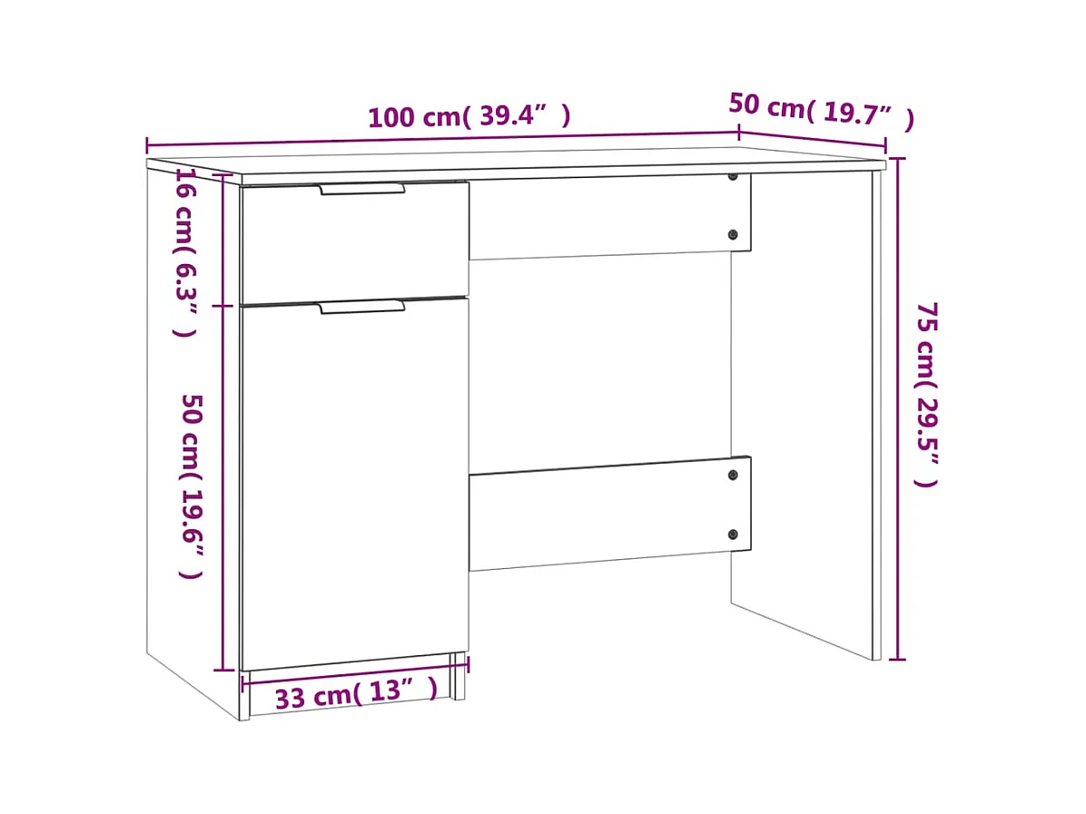 Bureau table poste de bois marron 100 x 50 x 75 cm 02_0023884