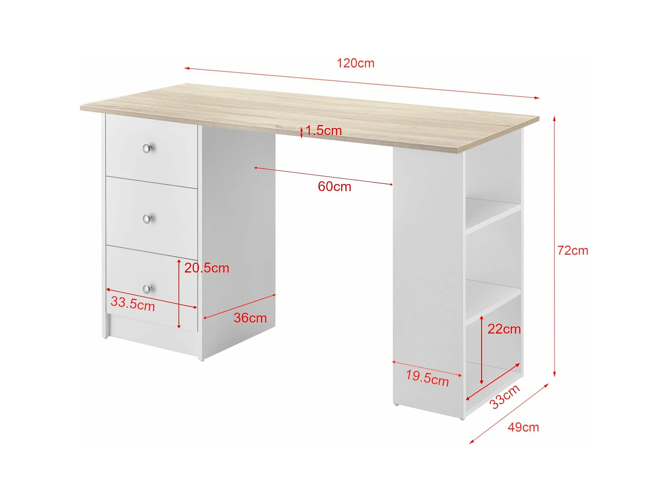 Bureau table poste de bois blanche 120 x 49 x 72 cm 03_0004709