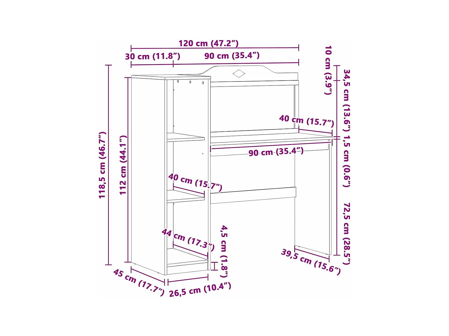 Bureau tableau noir Blanc et gris 120 x 45 x 118.5 cm