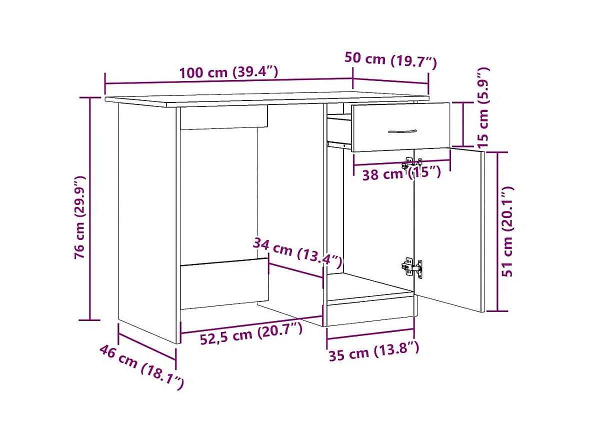 Bureau chêne artisanal 100x50x76 cm bois d'ingénierie