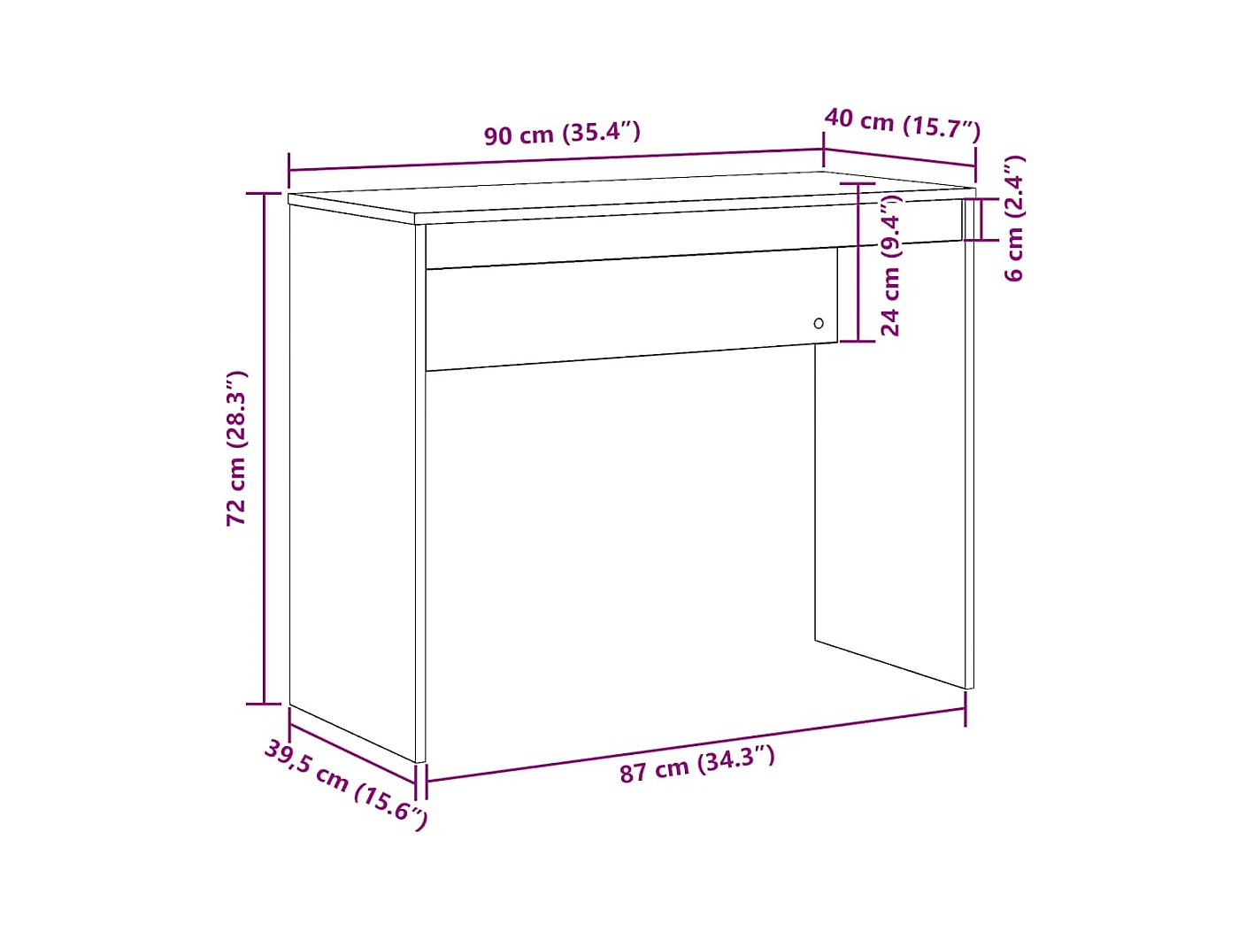 Bureau chêne artisanal 90x40x72 cm bois d'ingénierie