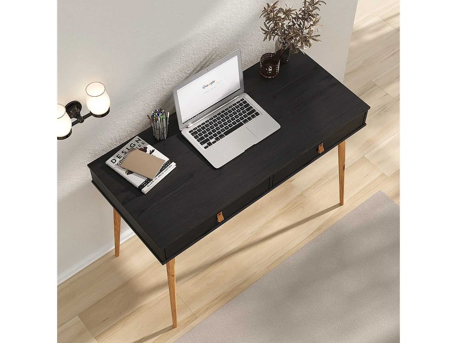 Bureau en Bois Belinda L 119 cm 2 Tiroirs Coloris Noir et Châtaignier Table de Travail Bureau Droit Compact