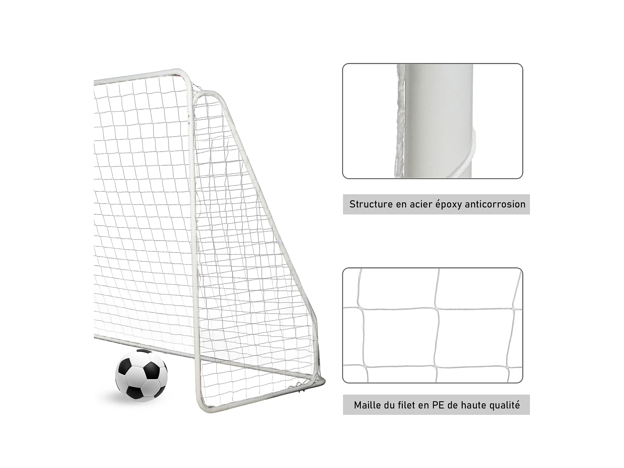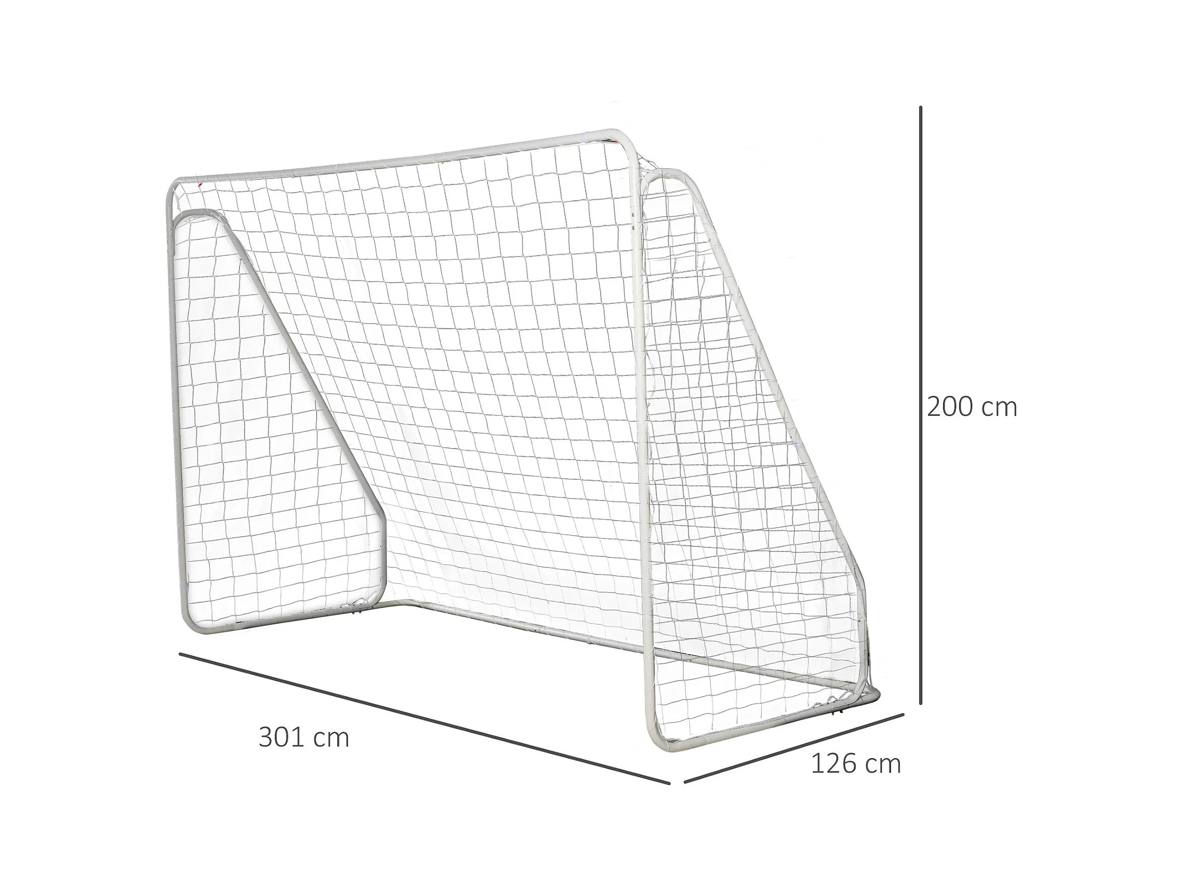 But de football - cage de foot - but futsal dim. 301L x 126l x 200H cm - châssis métal époxy filet PE - piquets inclus - blanc