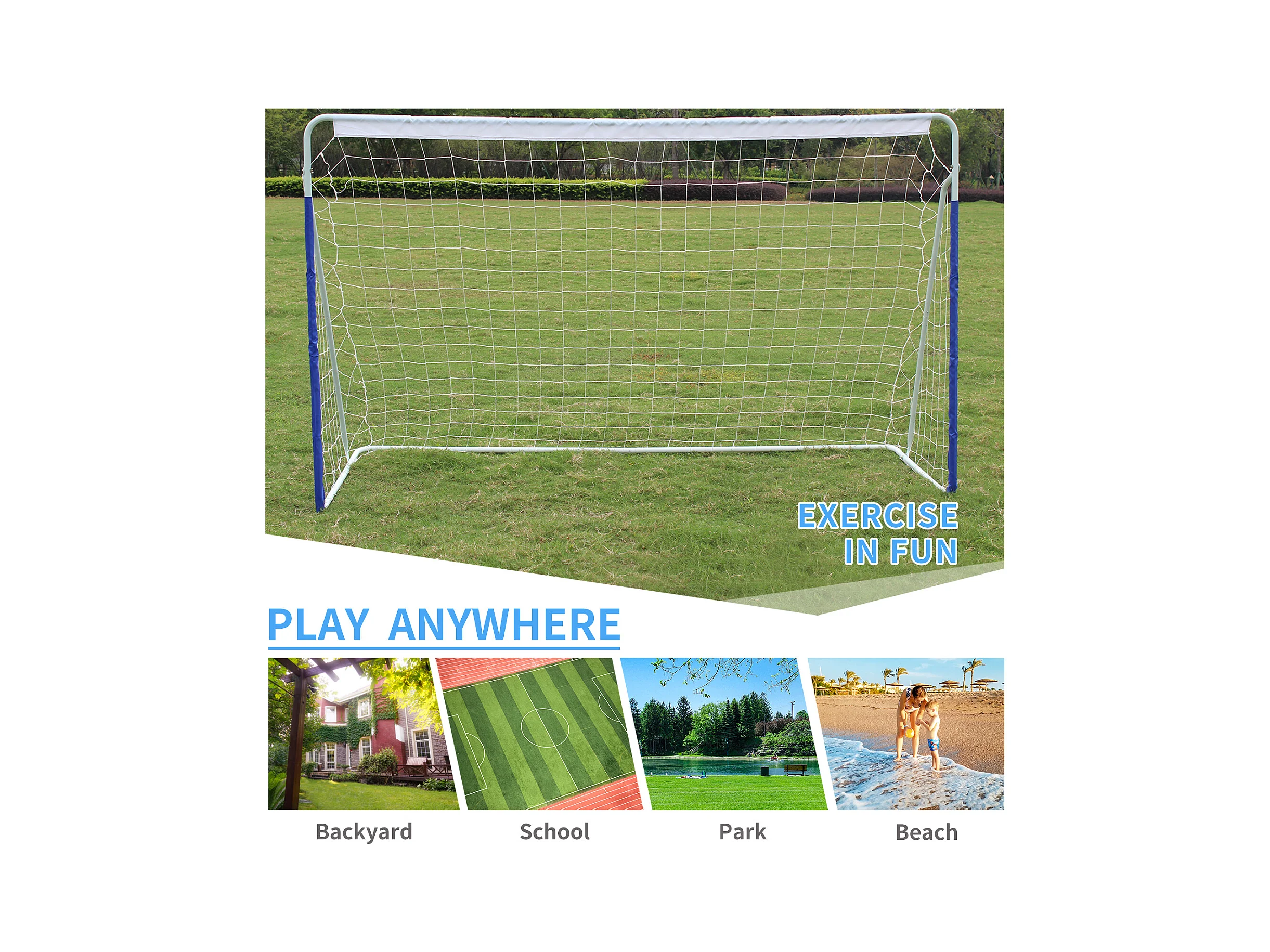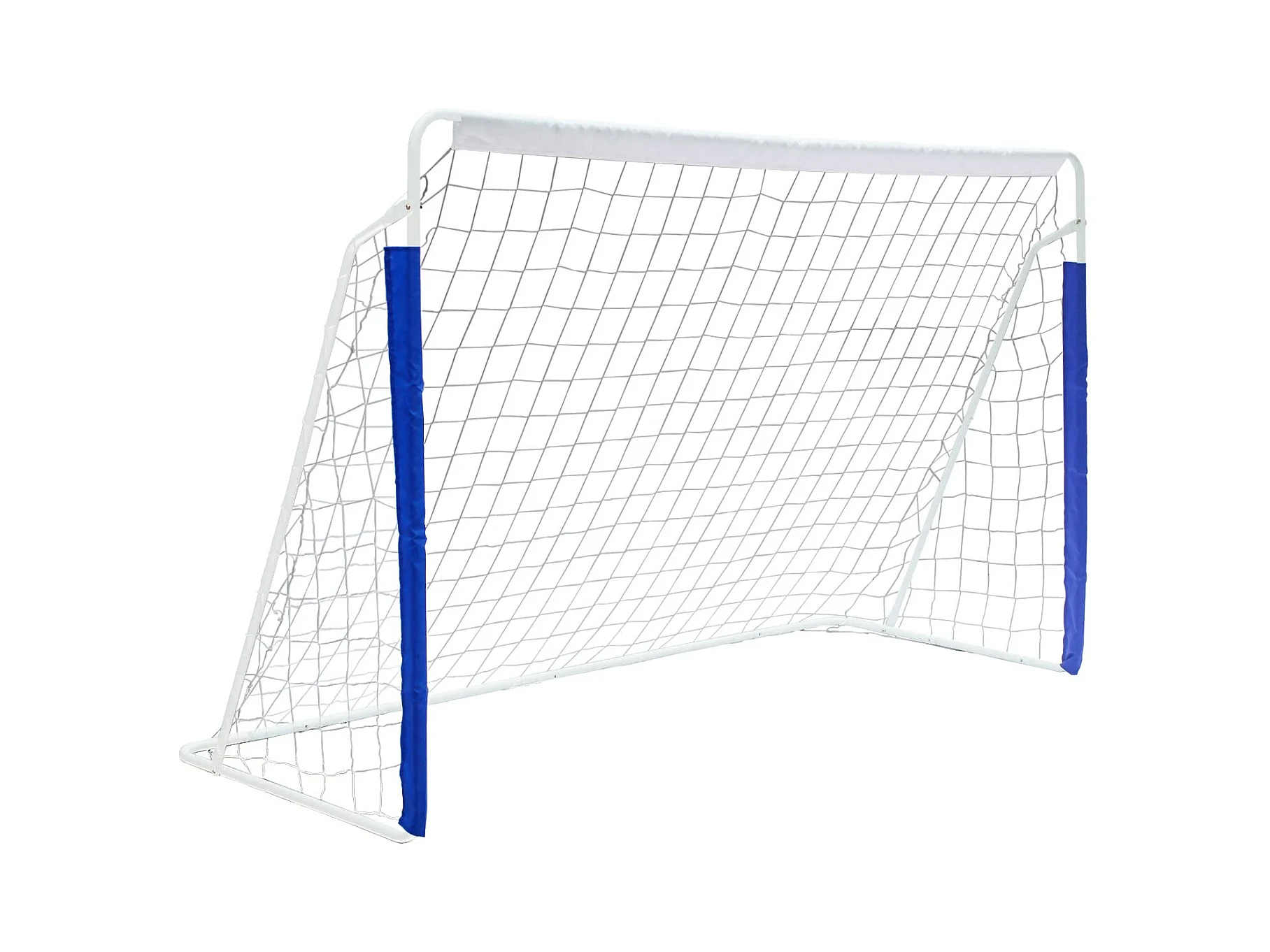 But de football portable pliable avec base en métal, filet résistant, idéal pour entraînement en extérieur/intérieur, bleu (240x150x90cm)
