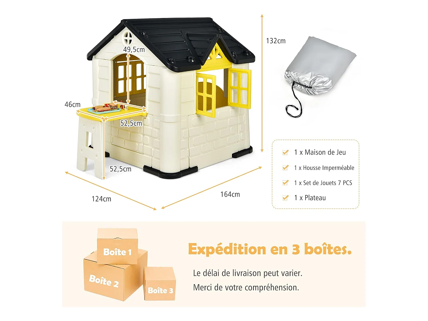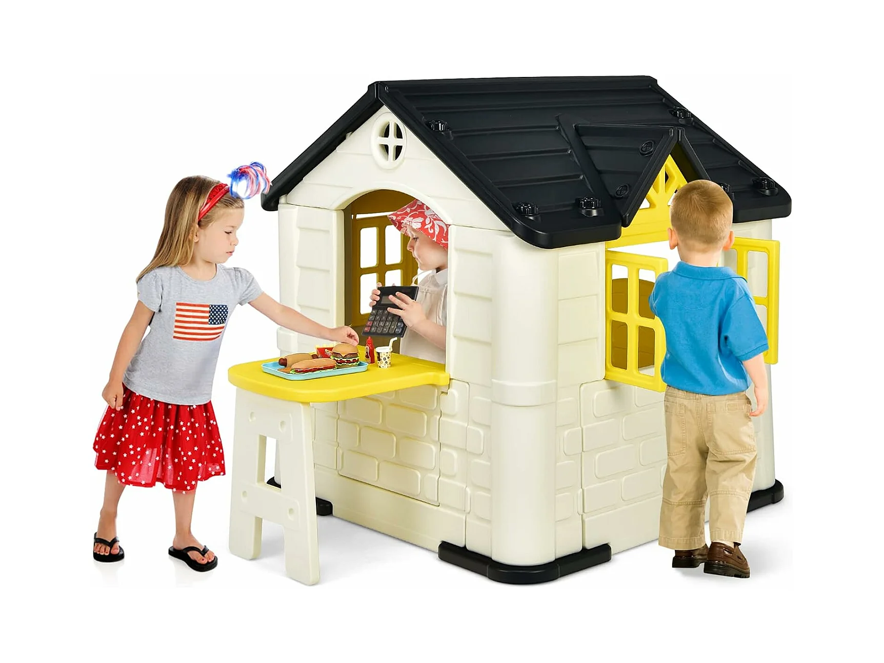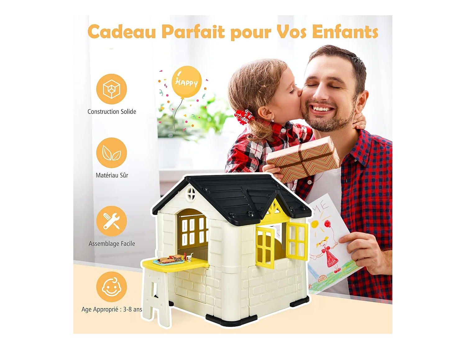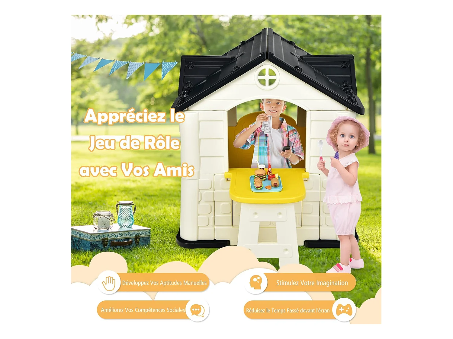 Cabane de Jardin pour Enfant - Table de Pique Nique, Maison Enfant Exterieur -Thème Burger Bar - en Plastique 164x124x132 cm Jaune