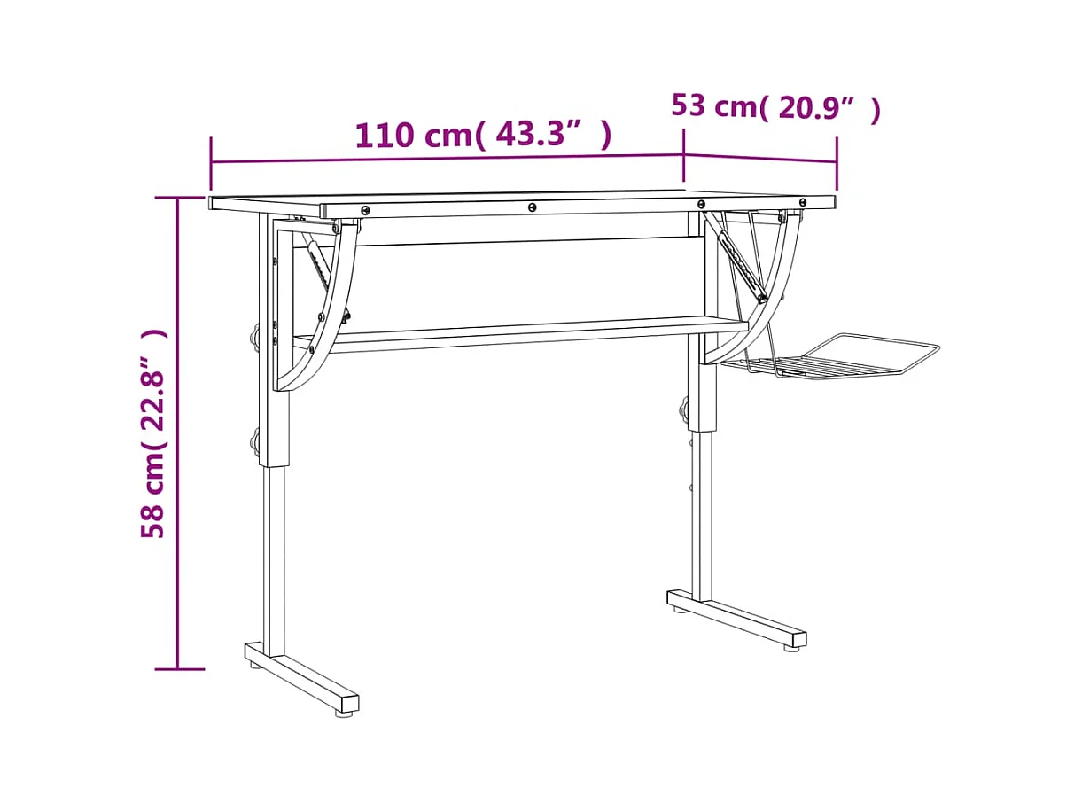Norbert-Paul Bureau de travail réglable 90x40x(13-50) cm Acier et bois