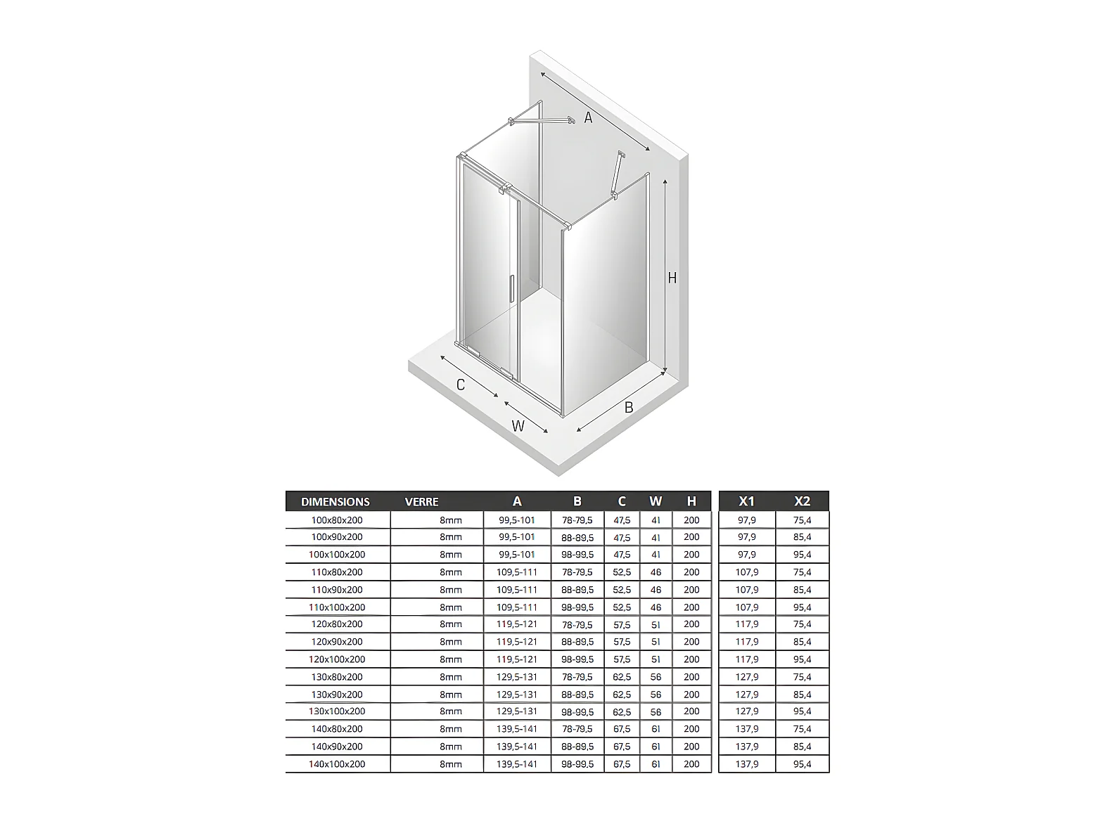 Cabine de douche 100x80 coulissante noire CANARIES NOIR, accès de face