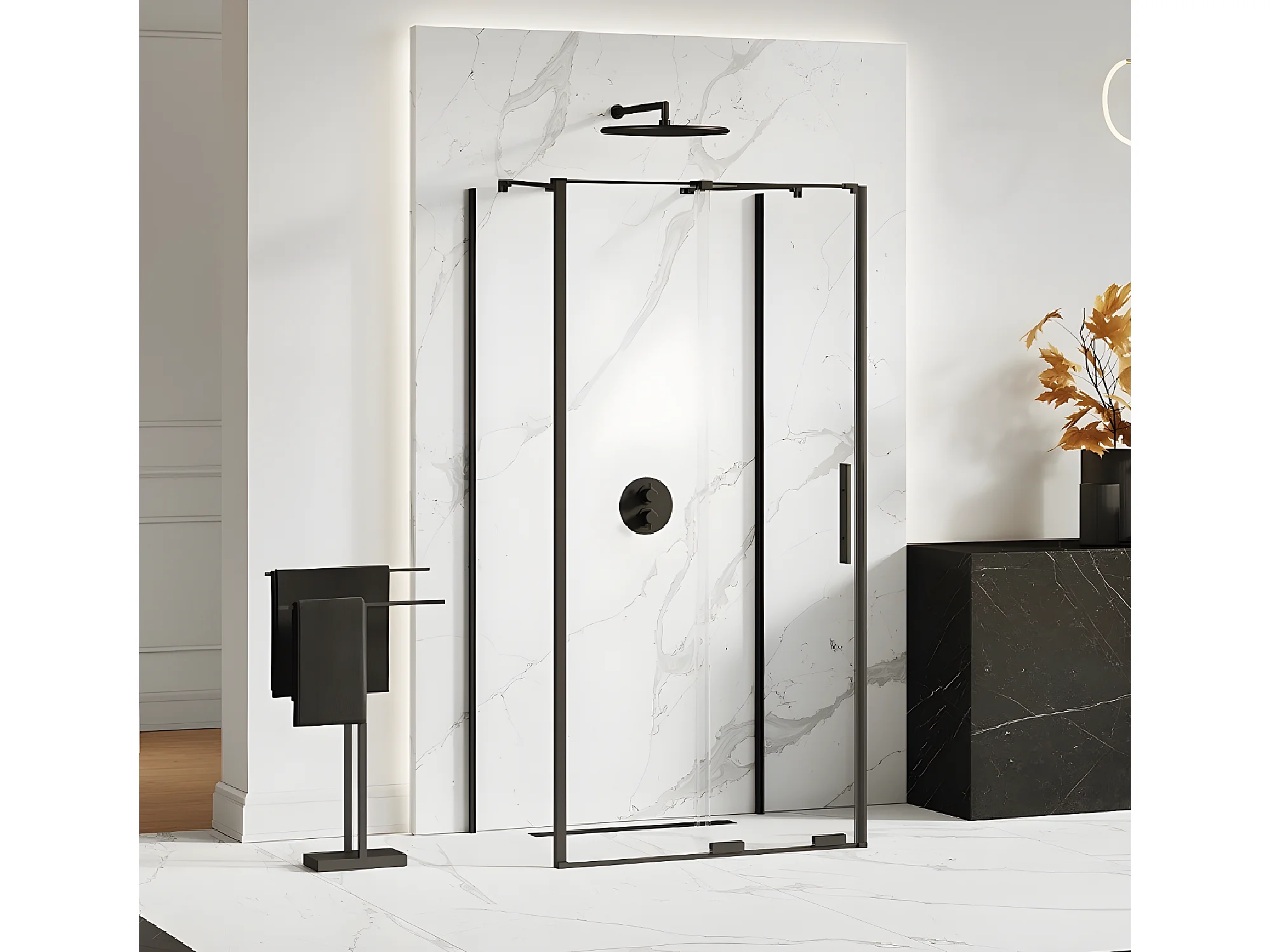 Cabine de douche 120x90 coulissante noire CANARIES NOIR, accès de face
