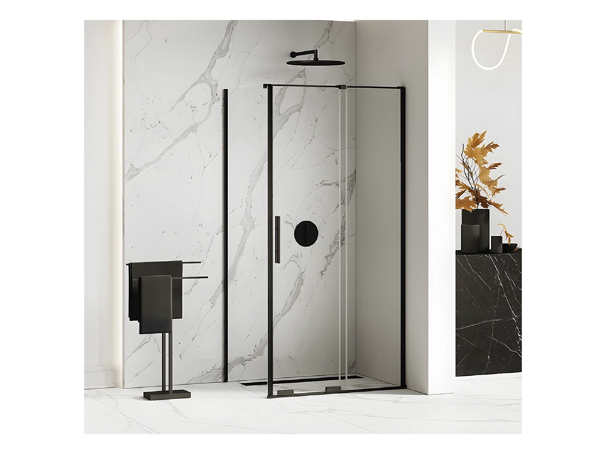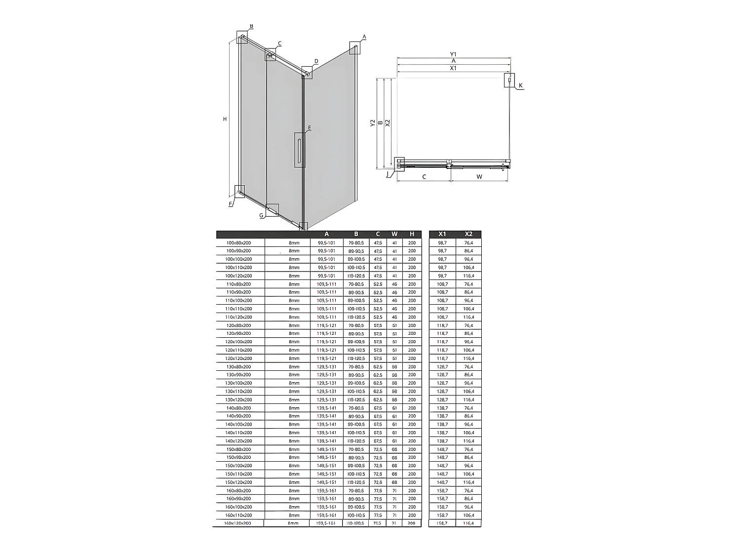 Cabine de douche 140x80cm coulissante CANARIES NOIR, noir, acces de face