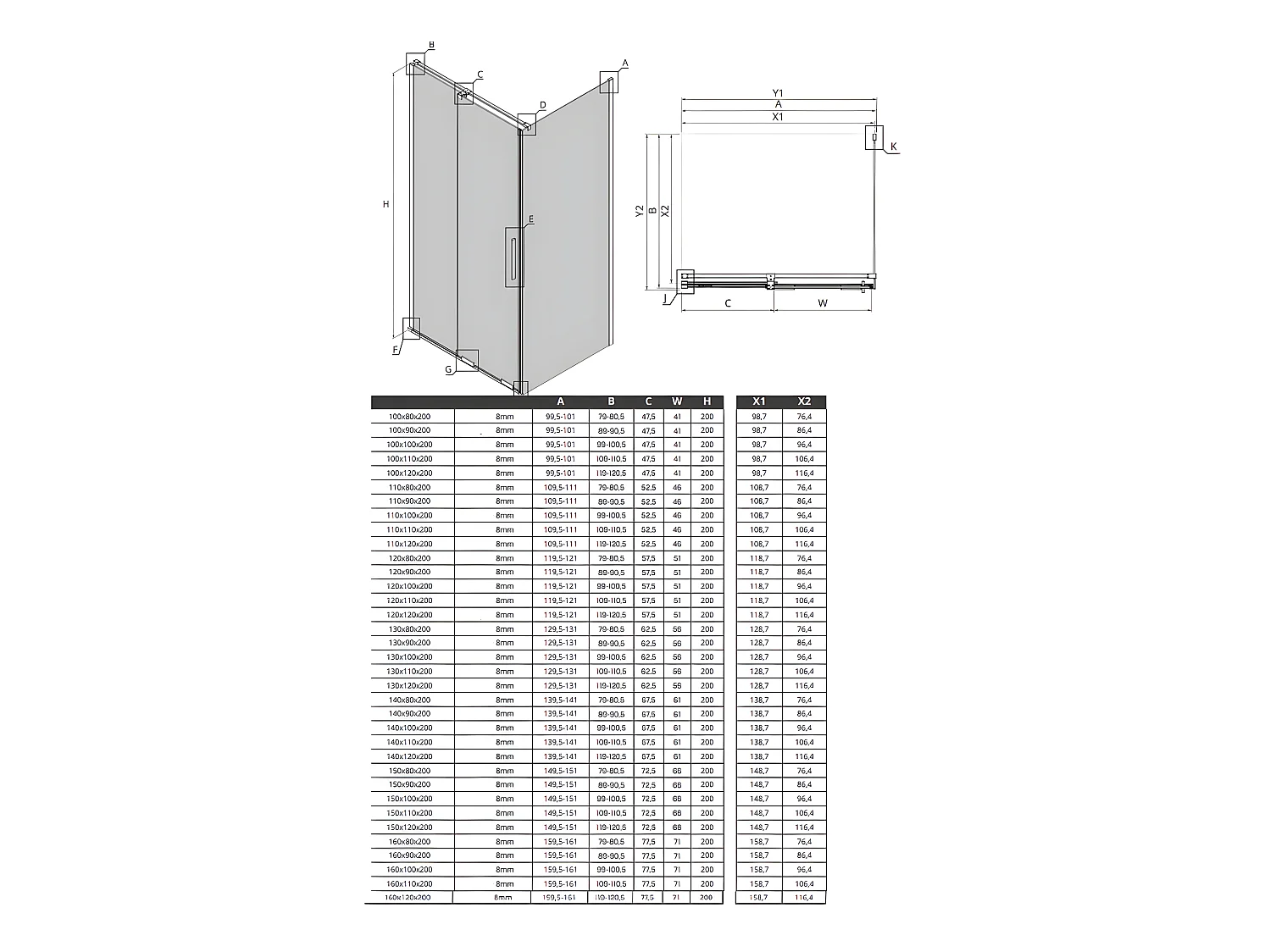 Cabine de douche 160x80cm coulissante CANARIES NOIR, noir, acces de face
