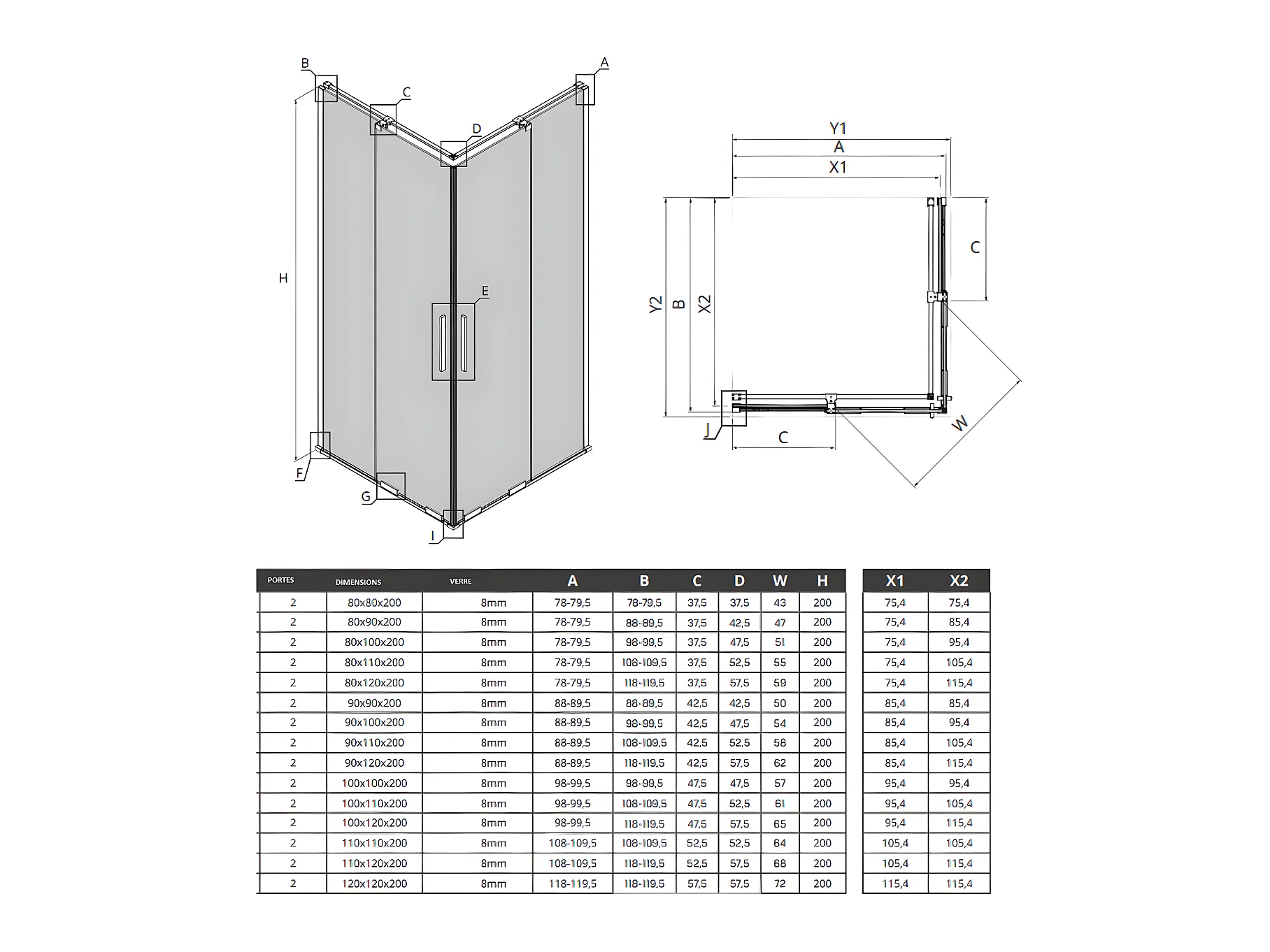Cabine de douche 80x80 cm,coulissante CANARIES NOIR, noir, acces d'angle