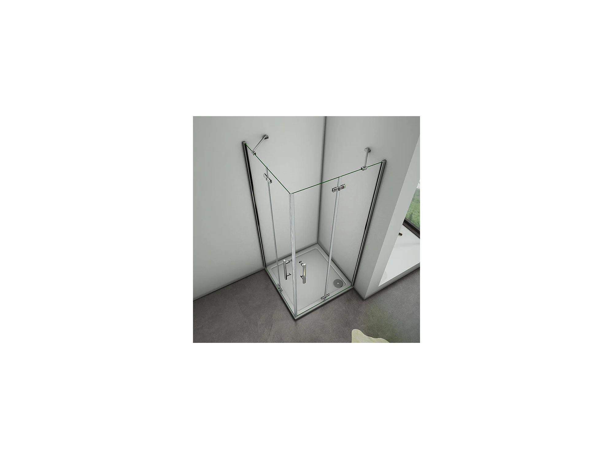 Cabine de douche battante 100x100x195cm en 6mm verre securit anticalcaire, porte de douche pivotante avec petite barre fixée d'angle