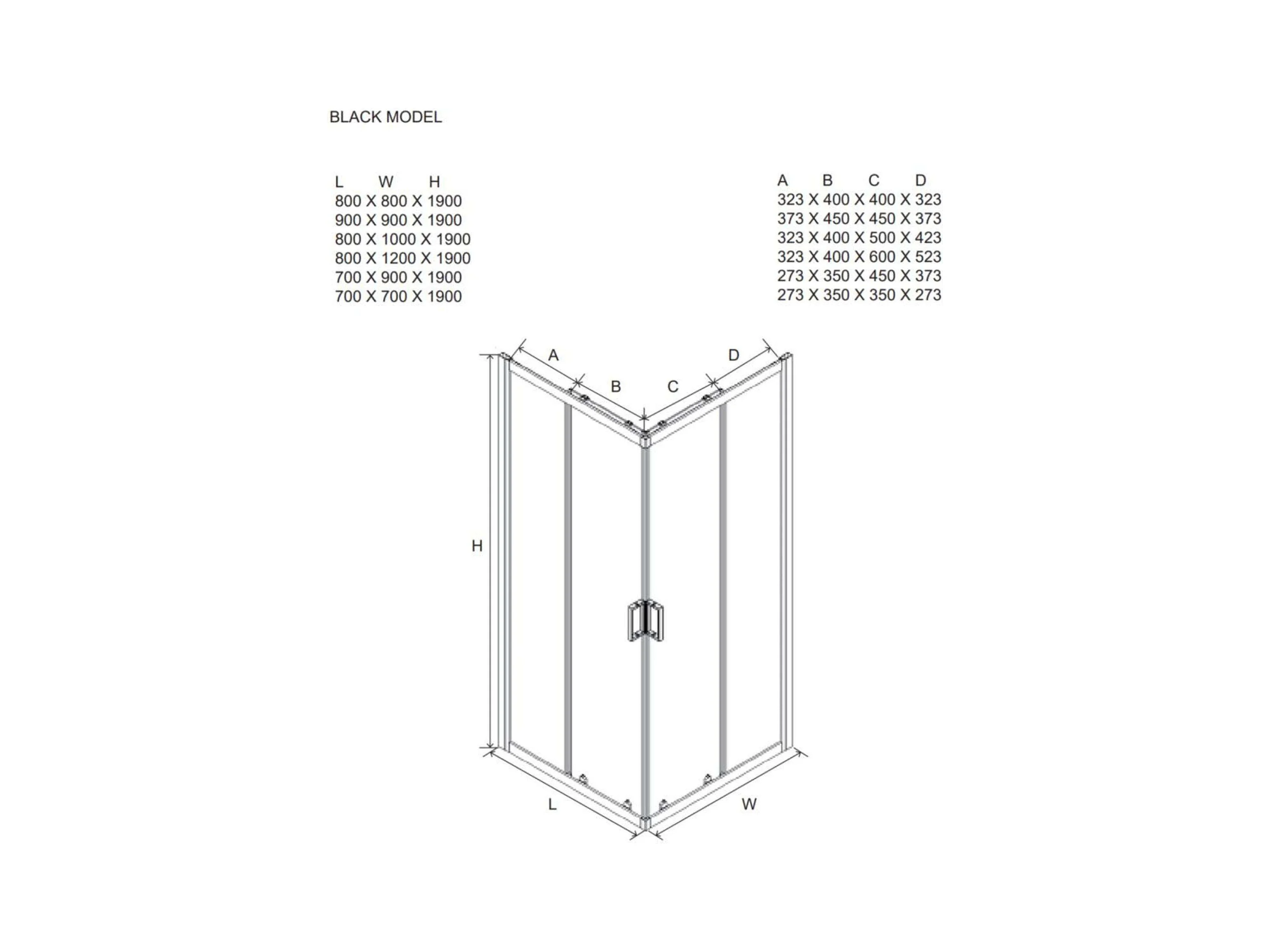 Cabine de douche carrée « Cielo » en verre transparent avec profil noir mat cm 90x90 190 h
