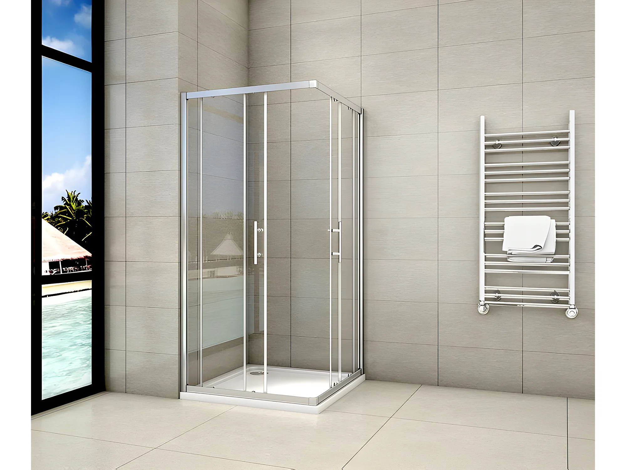 Cabine de douche coulissante 100x100x195cm en 6mm verre securit anticalcaire, L'accès d'angle