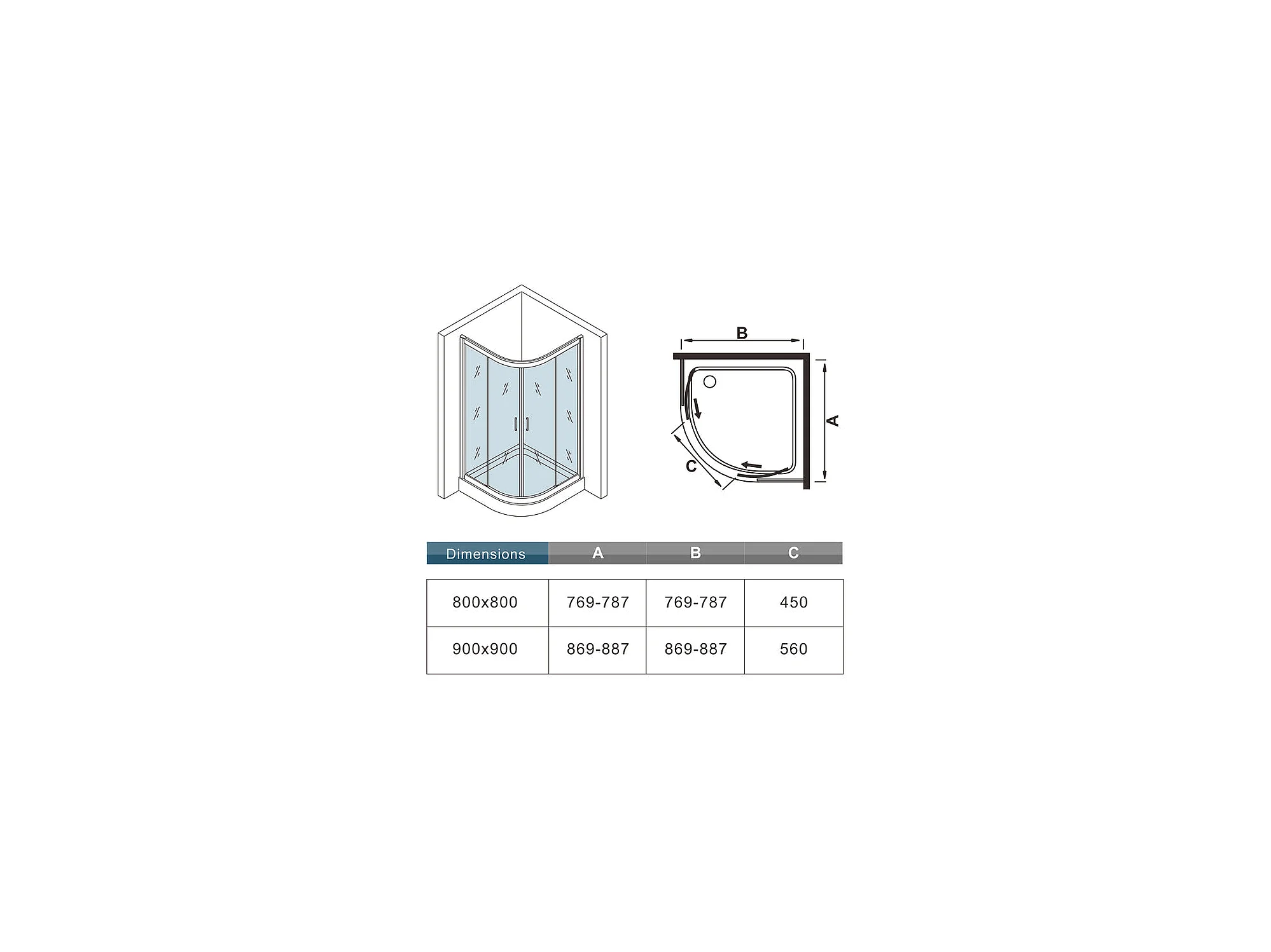 Cabine de douche coulissante 80x80x195cm cabine de douche 1/4 rond, 6mm verre de sécurité anticalcaire