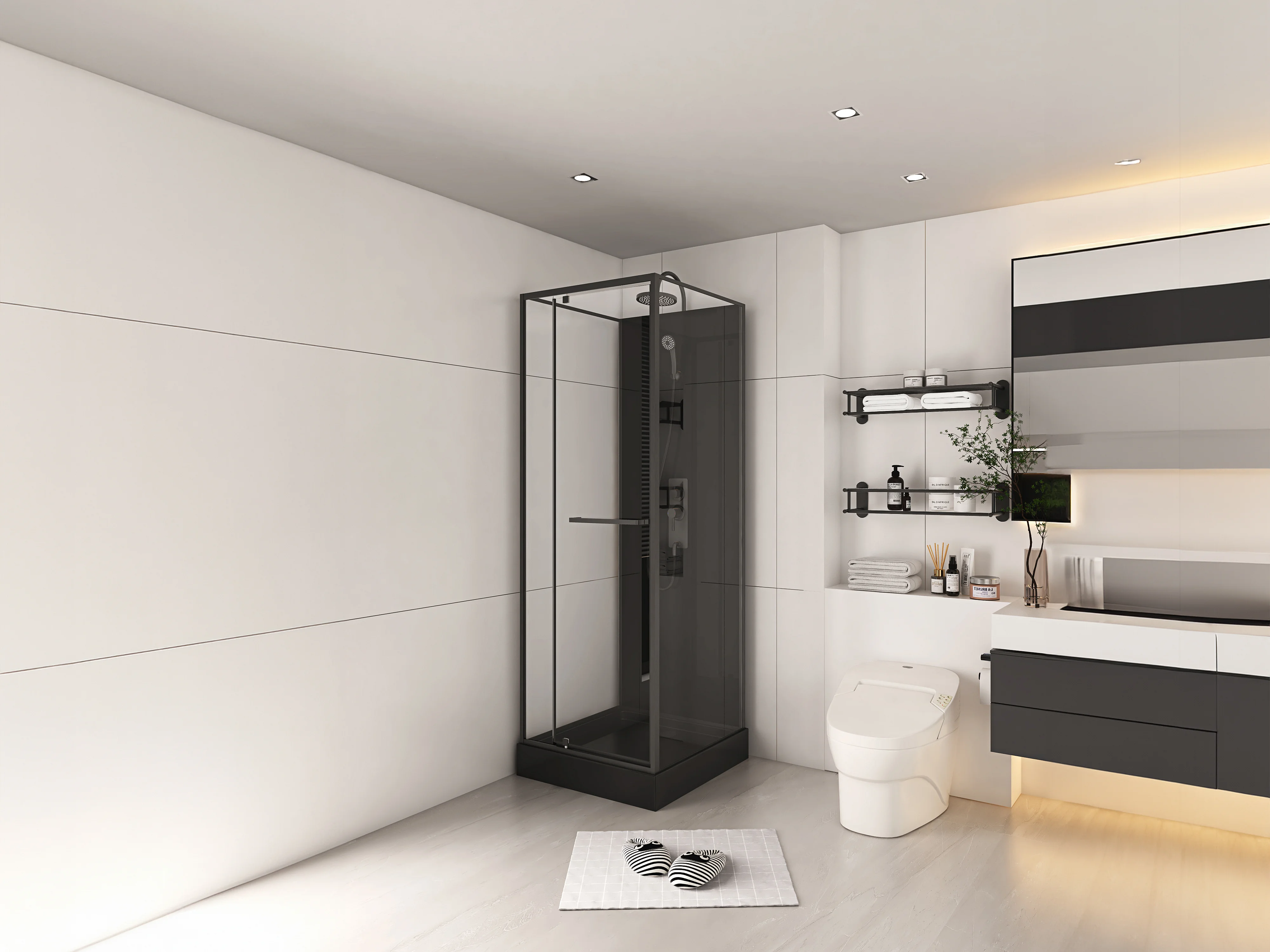 Cabine de douche installation réversible et hauteur ajustable - Noir - L90 x l90 x H213/232 cm - DAMILU