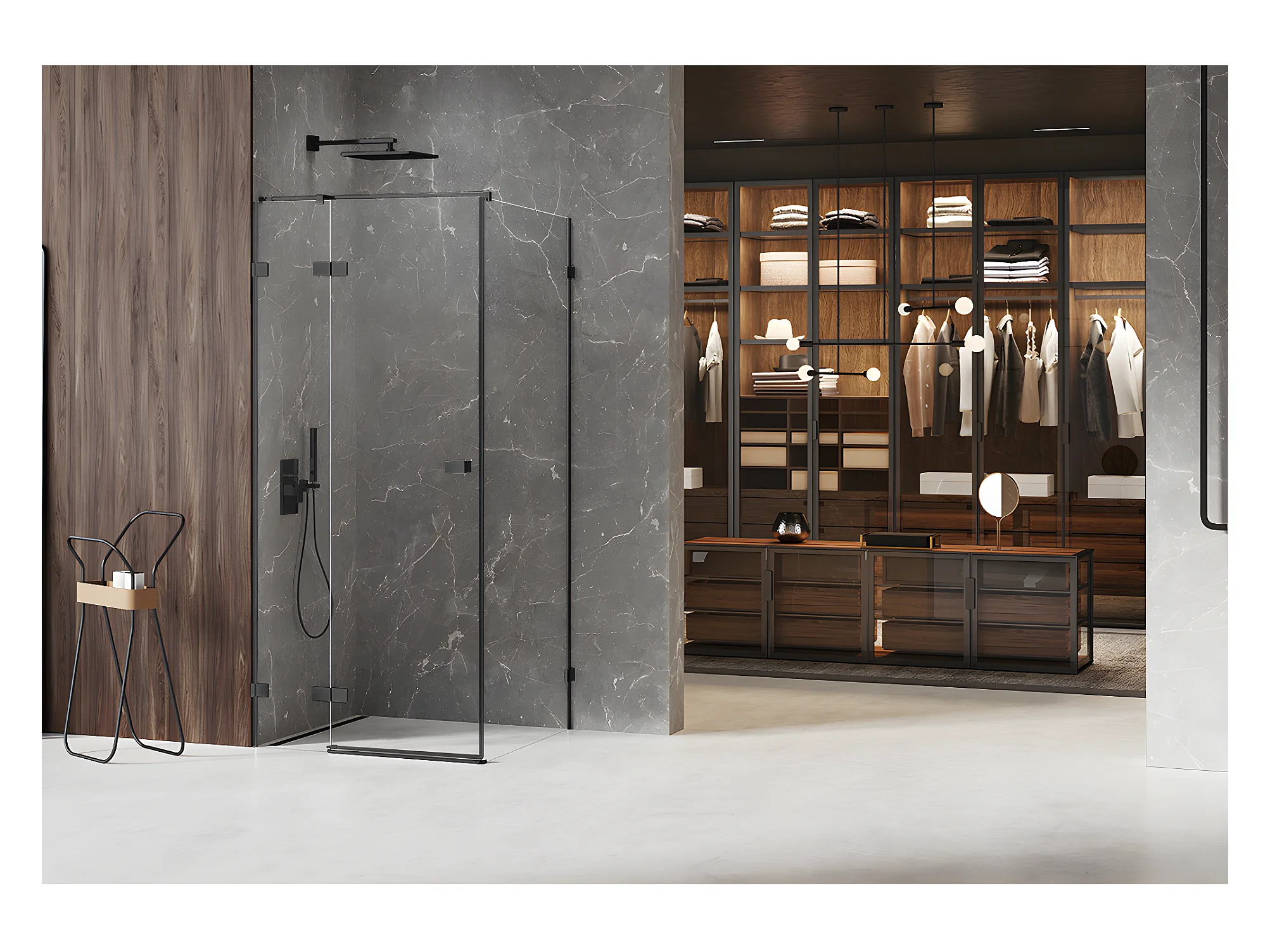 Cabine de douche noire 90x90cm,pivotante gauche BORA BORA BLACK, acces de face