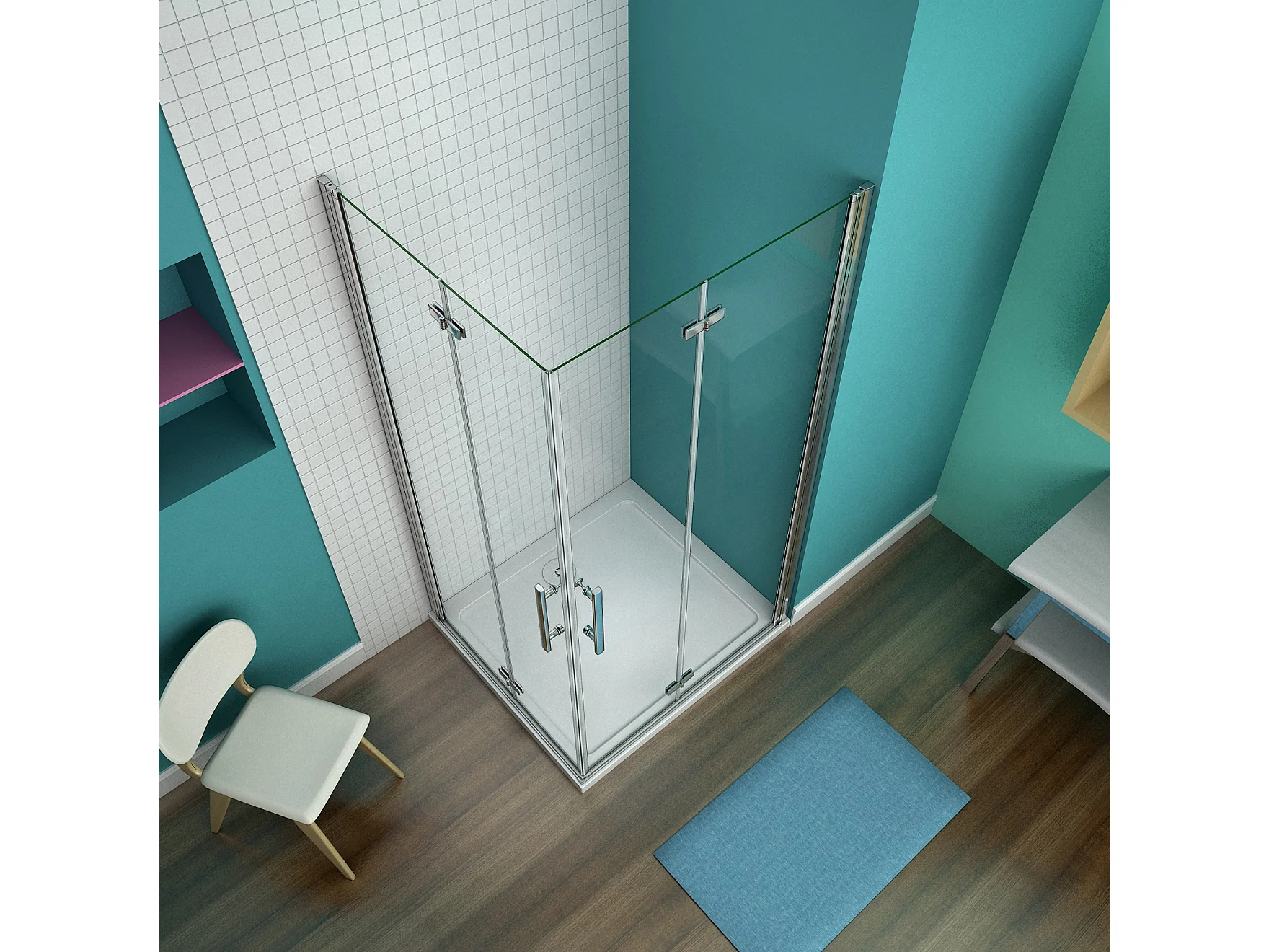 Cabine de douche pivotante et pliante 110x110x195cm en 6mm verre securit anticalcaire, poignée en inox