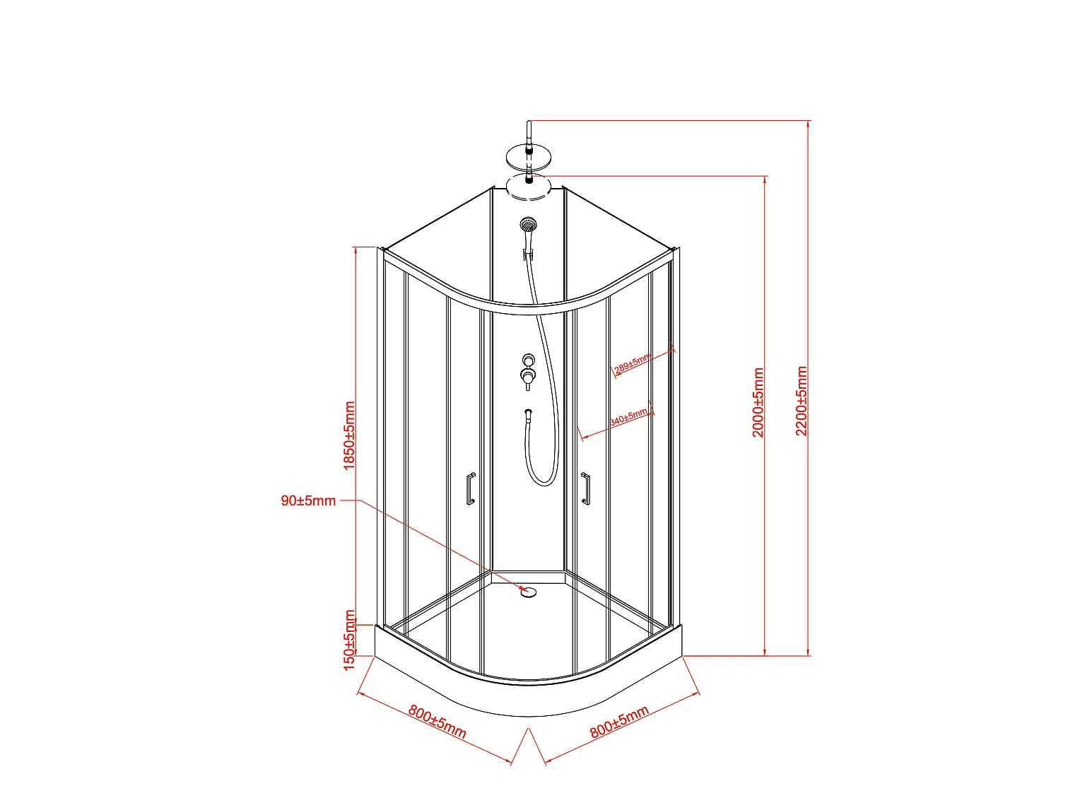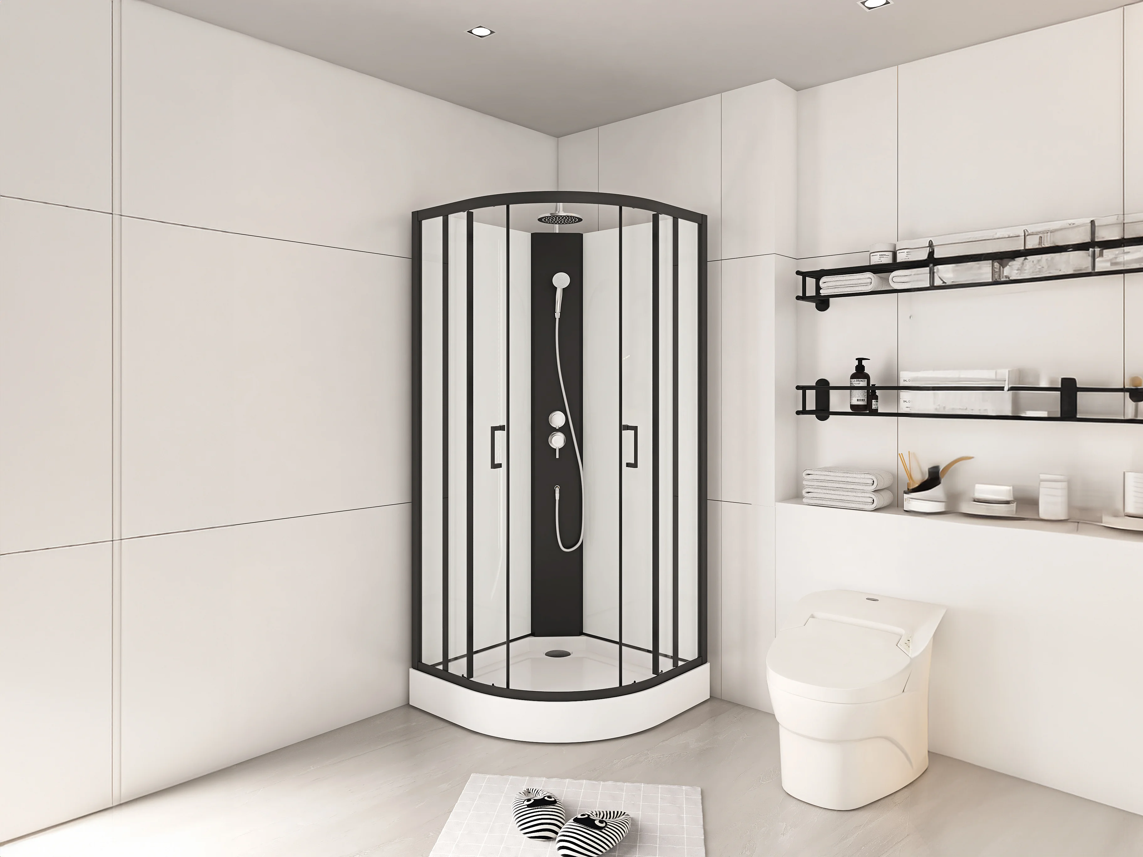 Cabine de douche quart de cercle - Hauteur ajustable - L80 x l80 x H200/220 cm - Noir et blanc - ROVATA
