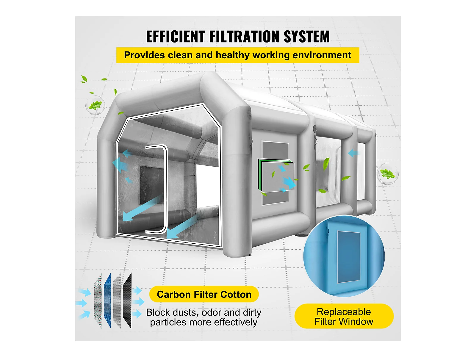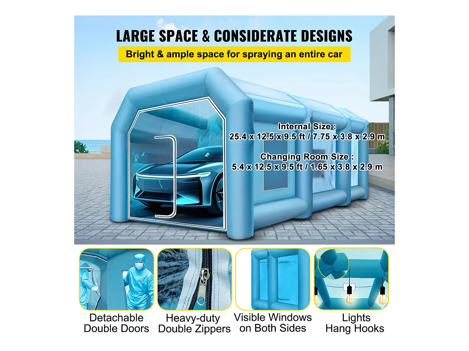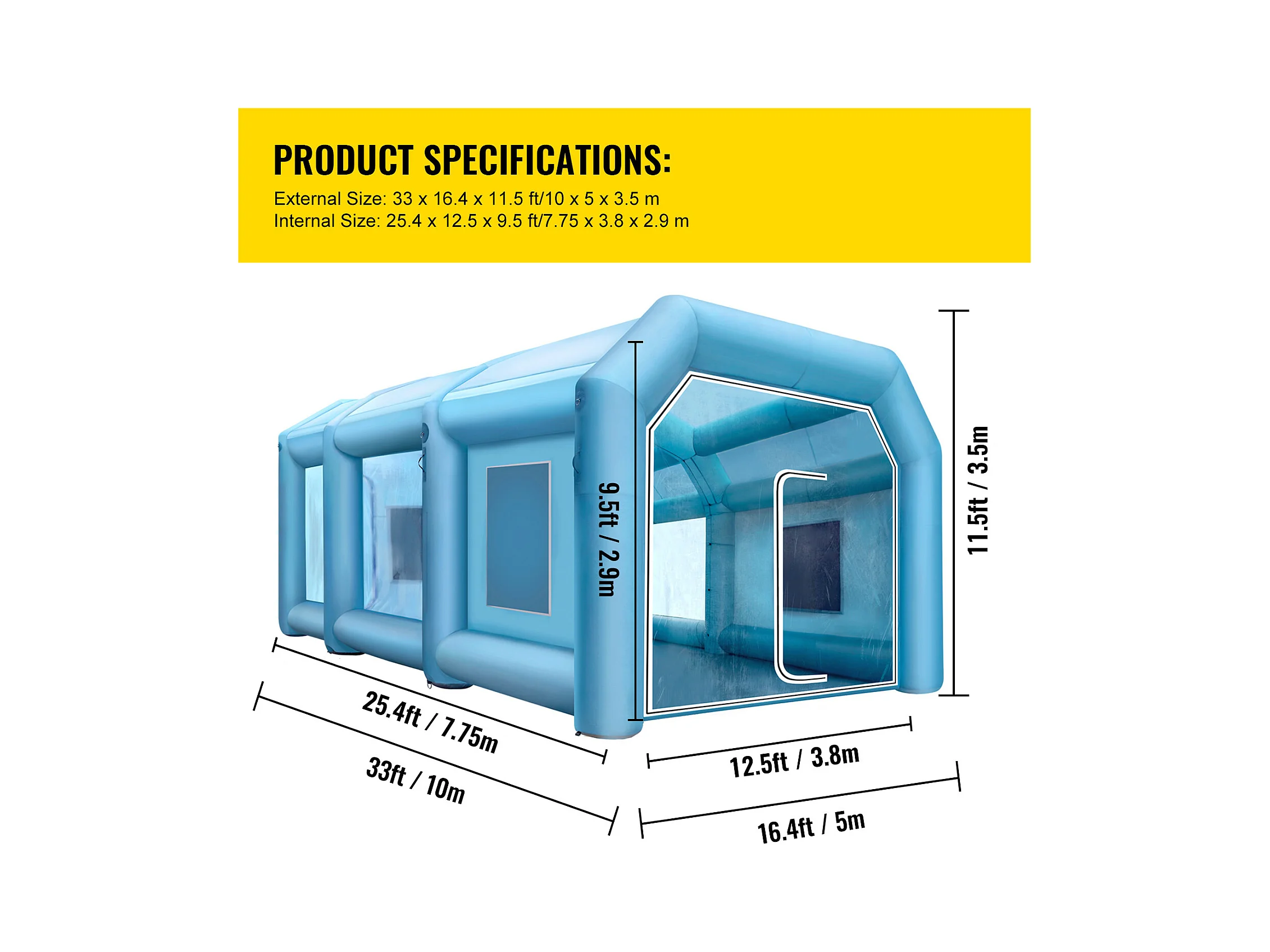 Cabine de Peinture Gonflable SucceBuy Cabine de Pulvérisation Gonflable 10.05 x 4.99 x 3.5 m pour Peinture Automobile avec 2 Souffleurs