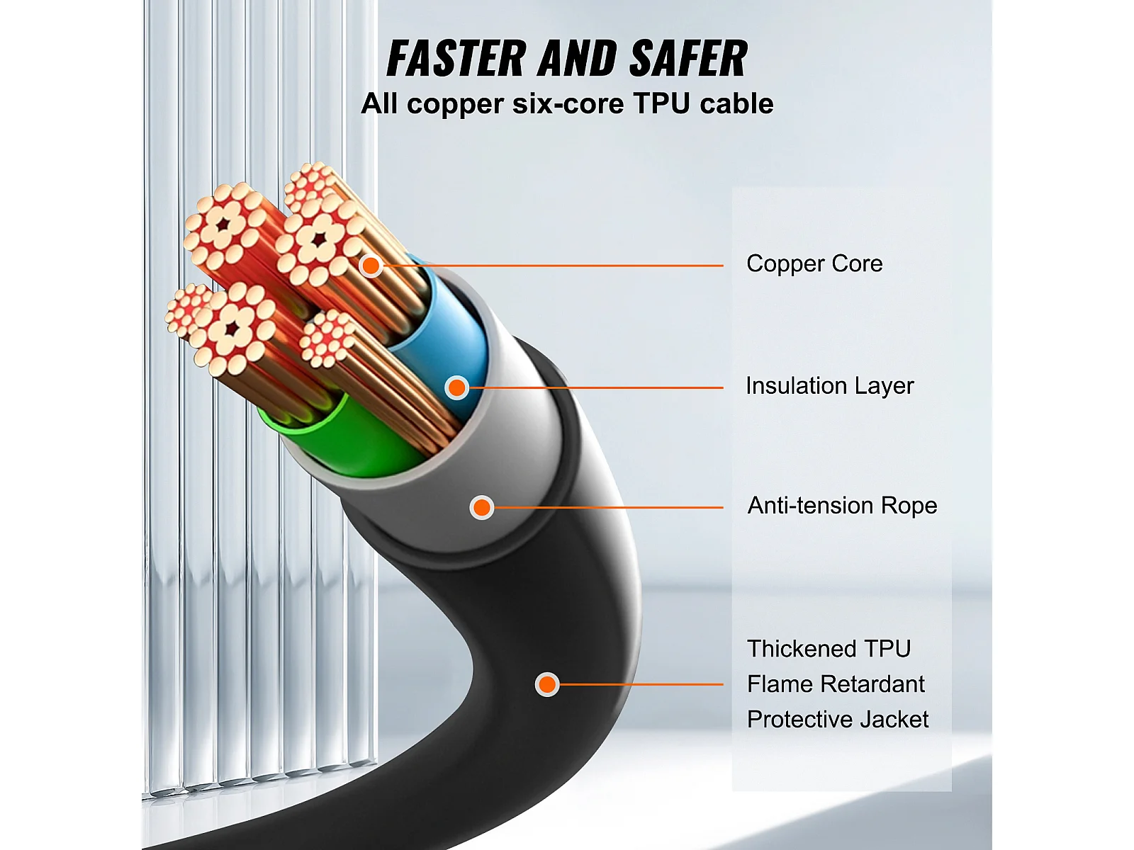 Câble de Charge, SucceBuy Câble de Charge Type 2 EV, 16 A, 50 CM, 3,6 KW, TPU, Câble pour Véhicule Électrique