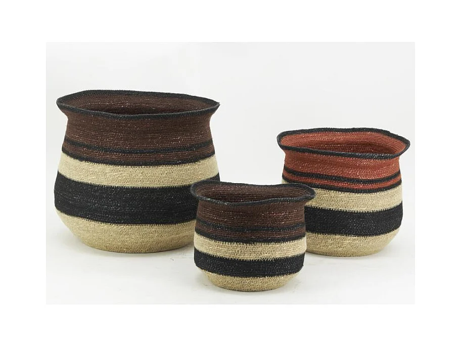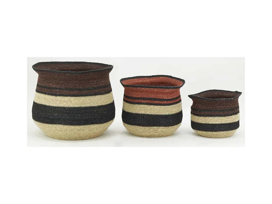 Cache-pot en fibre naturelle et coton noir d23x19,5/42h