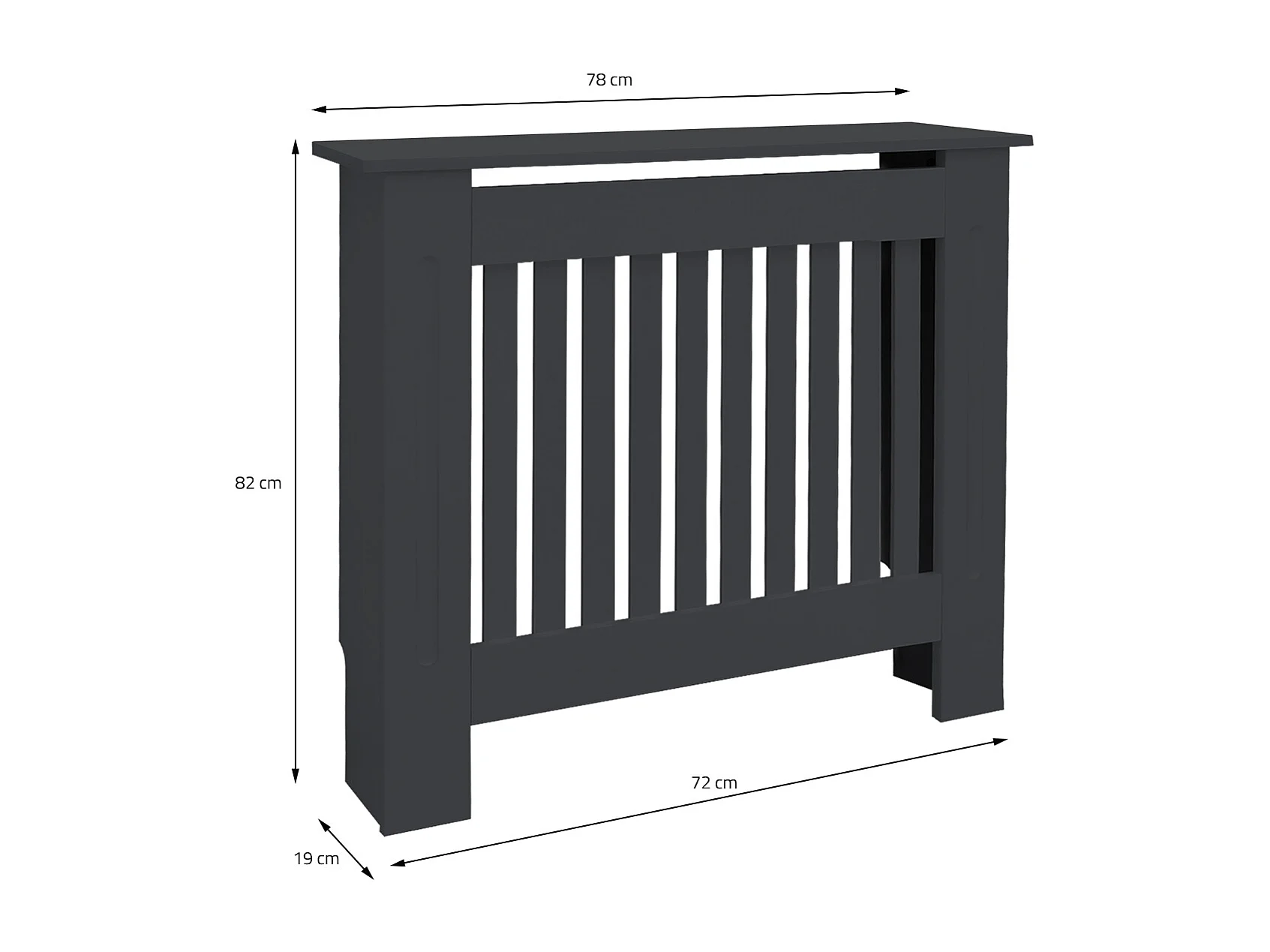 Cache-radiateur 78x19x82 cm anthracite à lattes verticales avec une surface d'étagère habillage robuste en bois MDF matériel de montage mural inclus