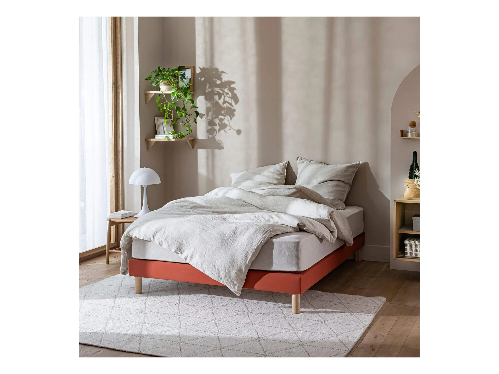 Cache-sommier bouclette intégral terracotta 160x200 - Boucletta