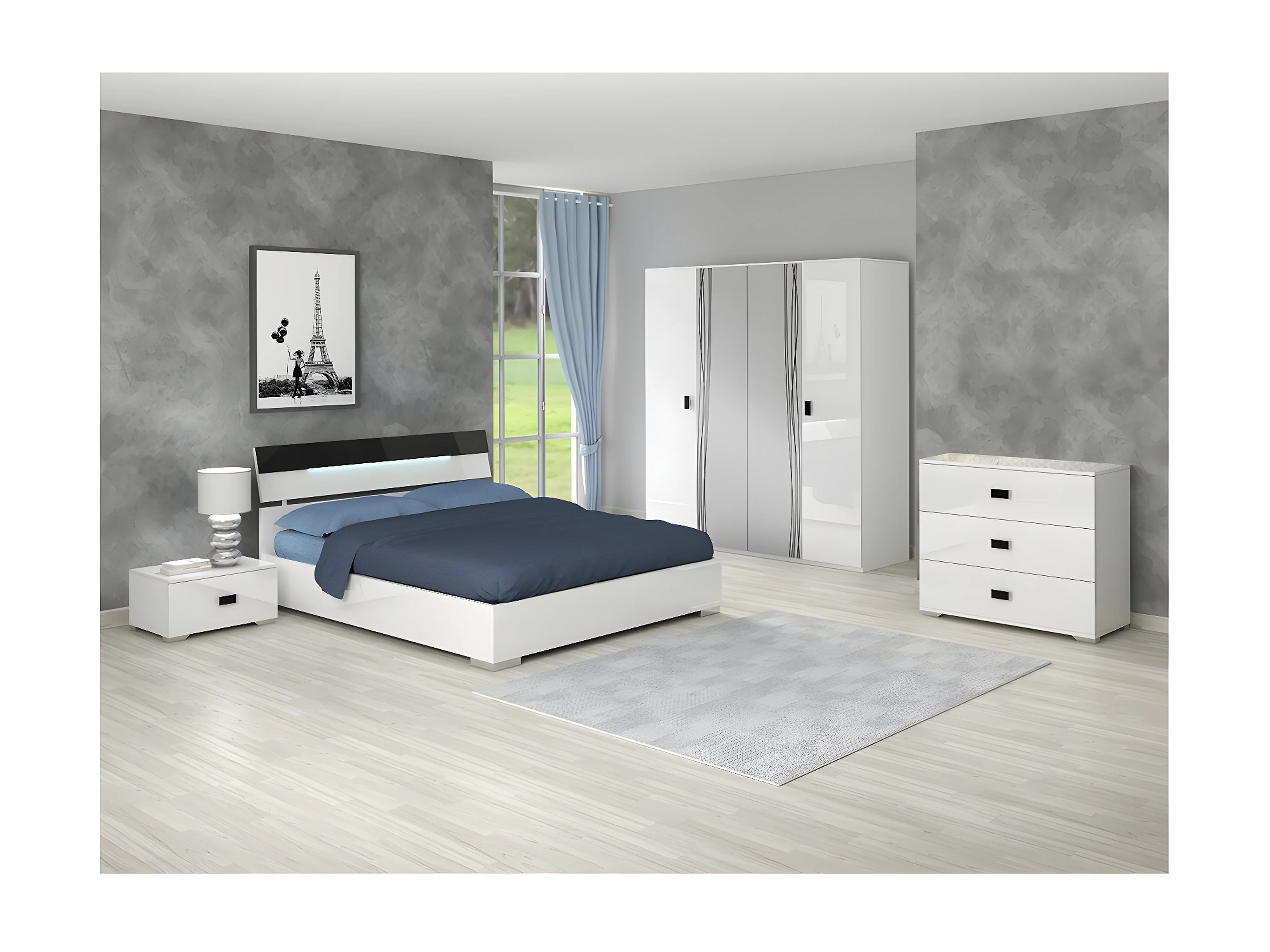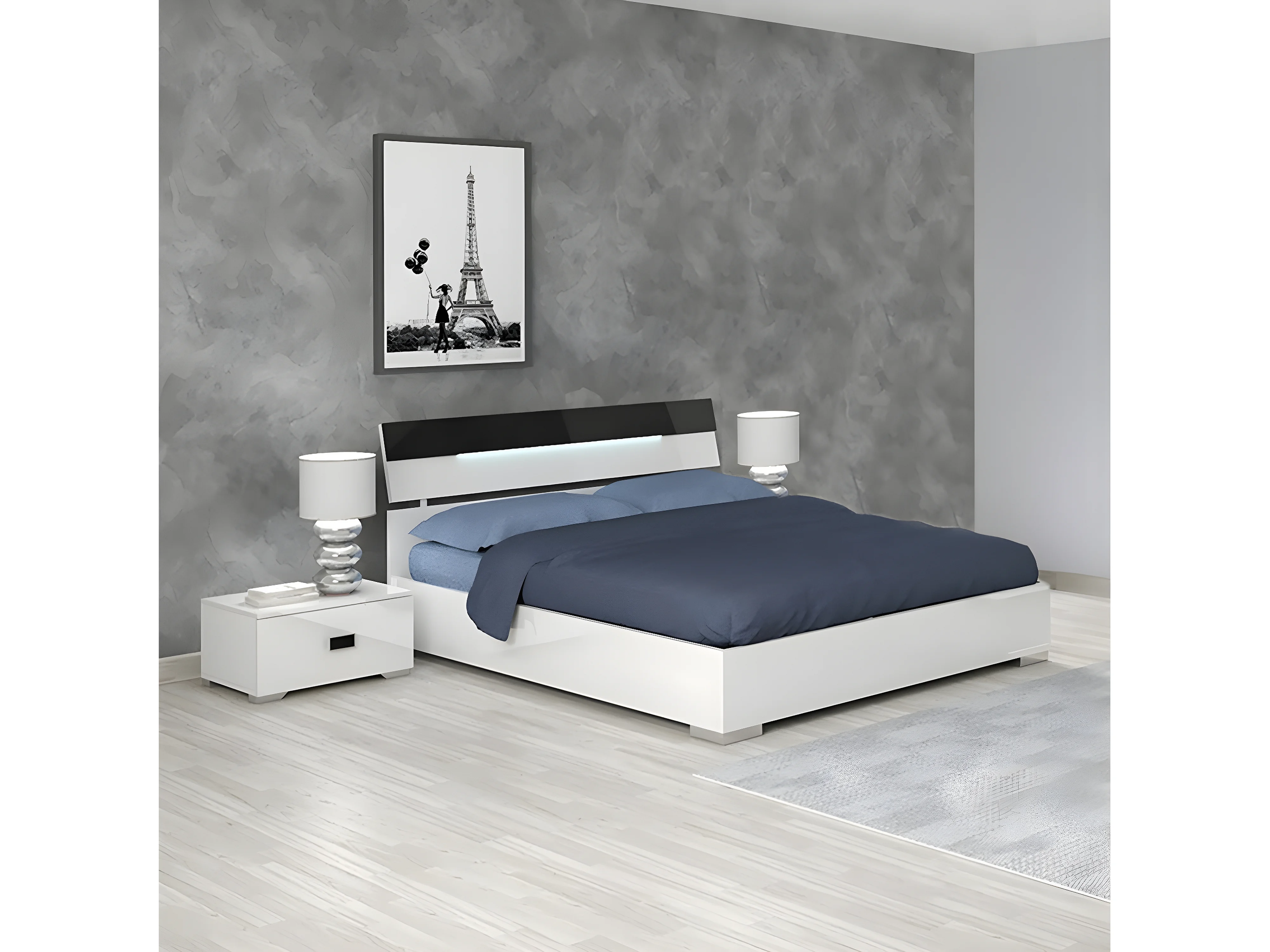 GAÏA - Chevet 2 Tiroirs Laquée Blanche Dessus Noir Aspect Marbre