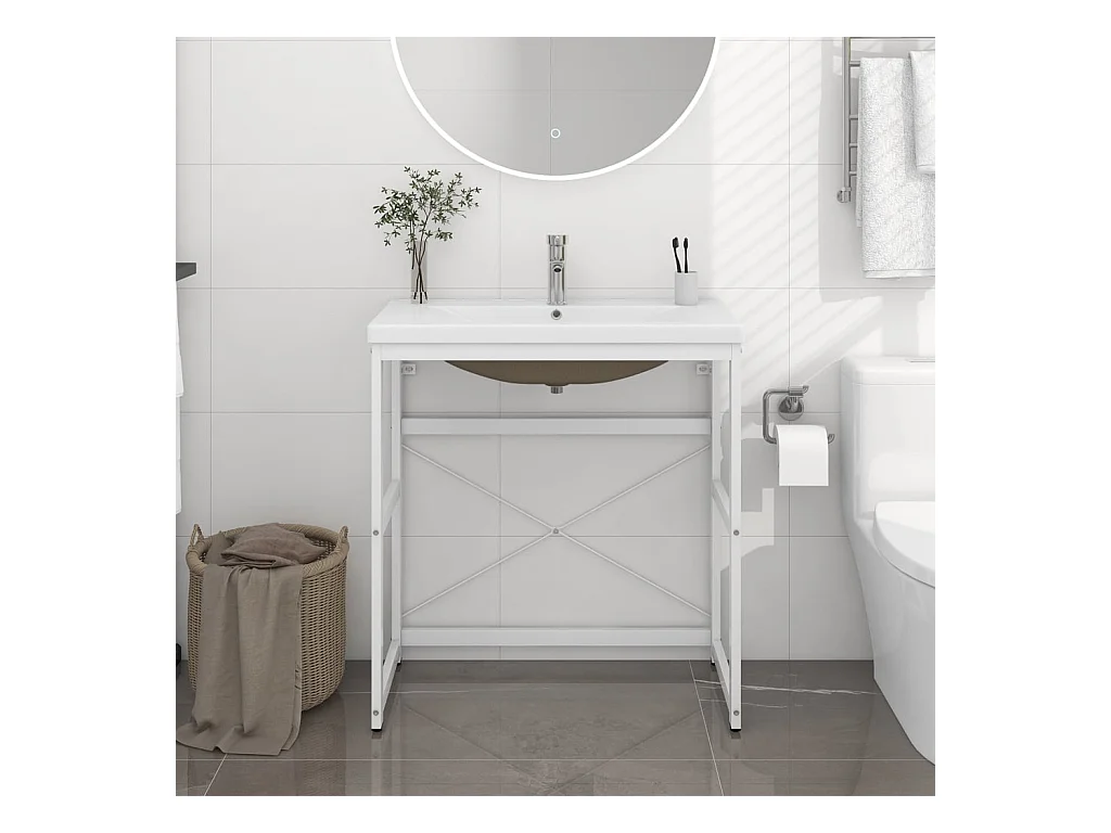 Cadre de lavabo de salle de bain vasque à encastrer Blanc Fer