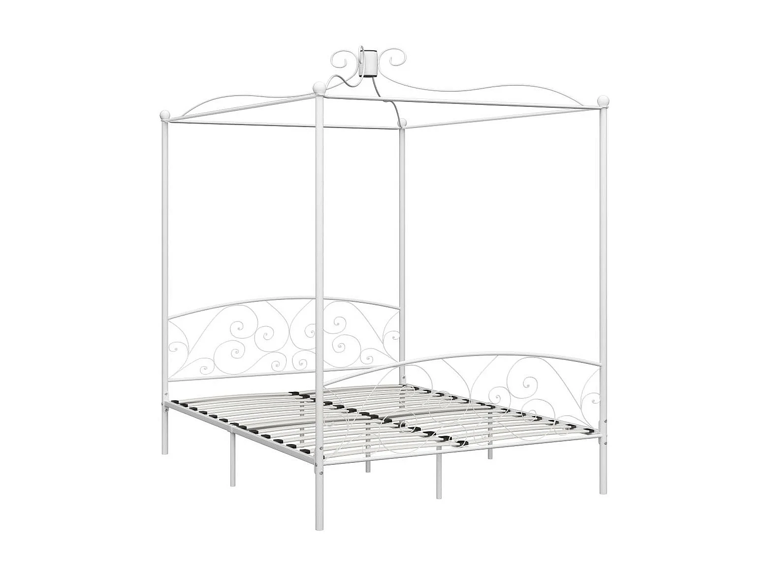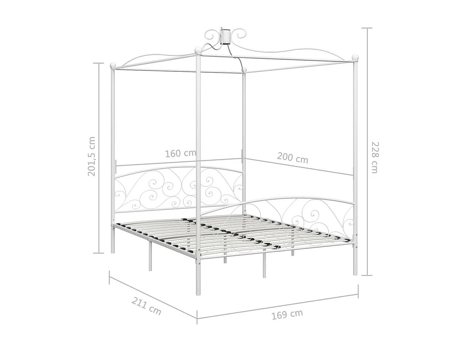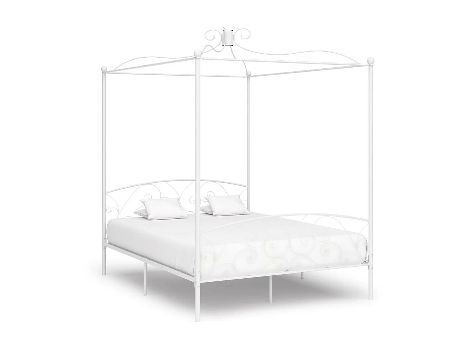 Cadre de lit à baldaquin Blanc Métal 160x200