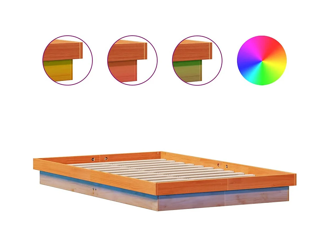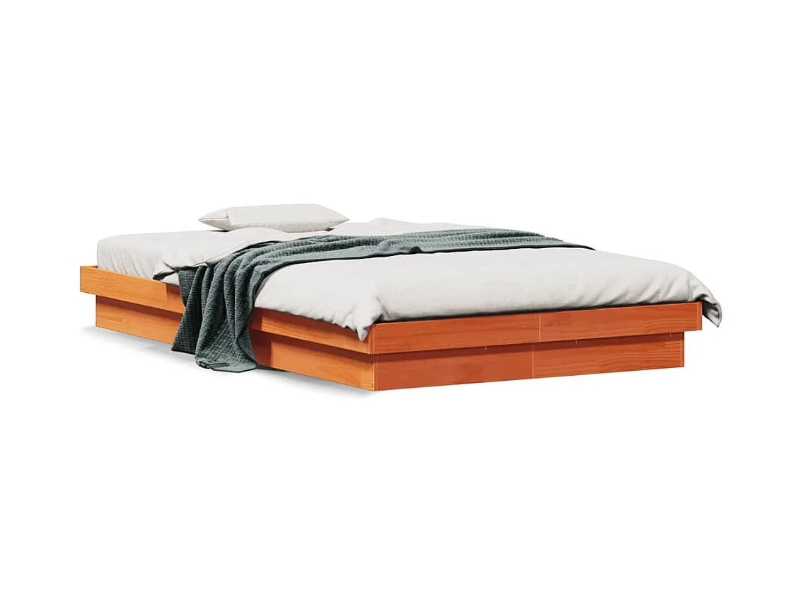 Cadre de lit à LED marron 140x200 bois de pin massif
