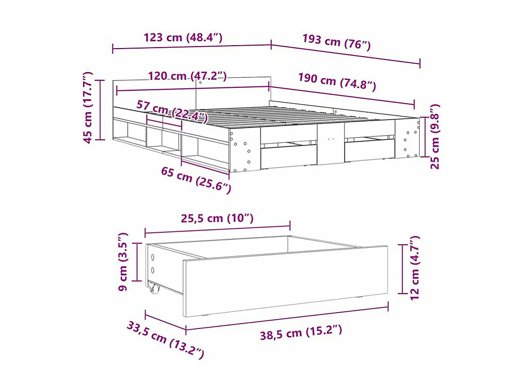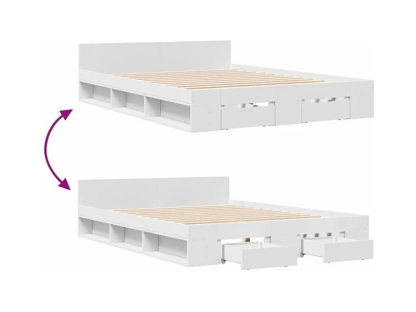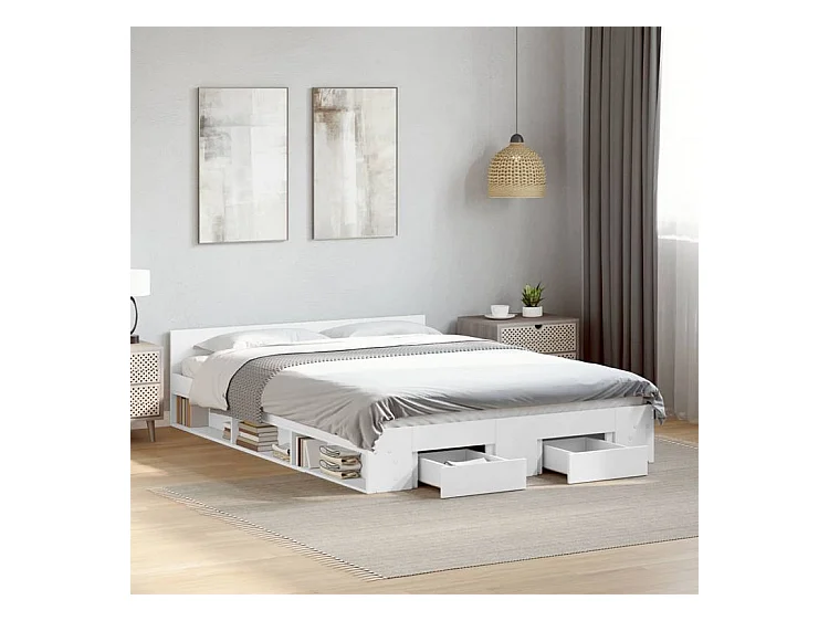 Cadre de lit à tiroirs blanc 120x190 bois d'ingénierie