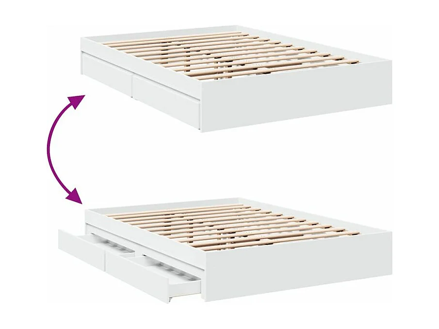 Cadre de lit à tiroirs blanc 120x190 bois d'ingénierie