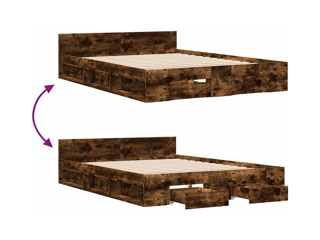 Cadre de lit à tiroirs chêne fumé 135x190 cm bois d'ingénierie