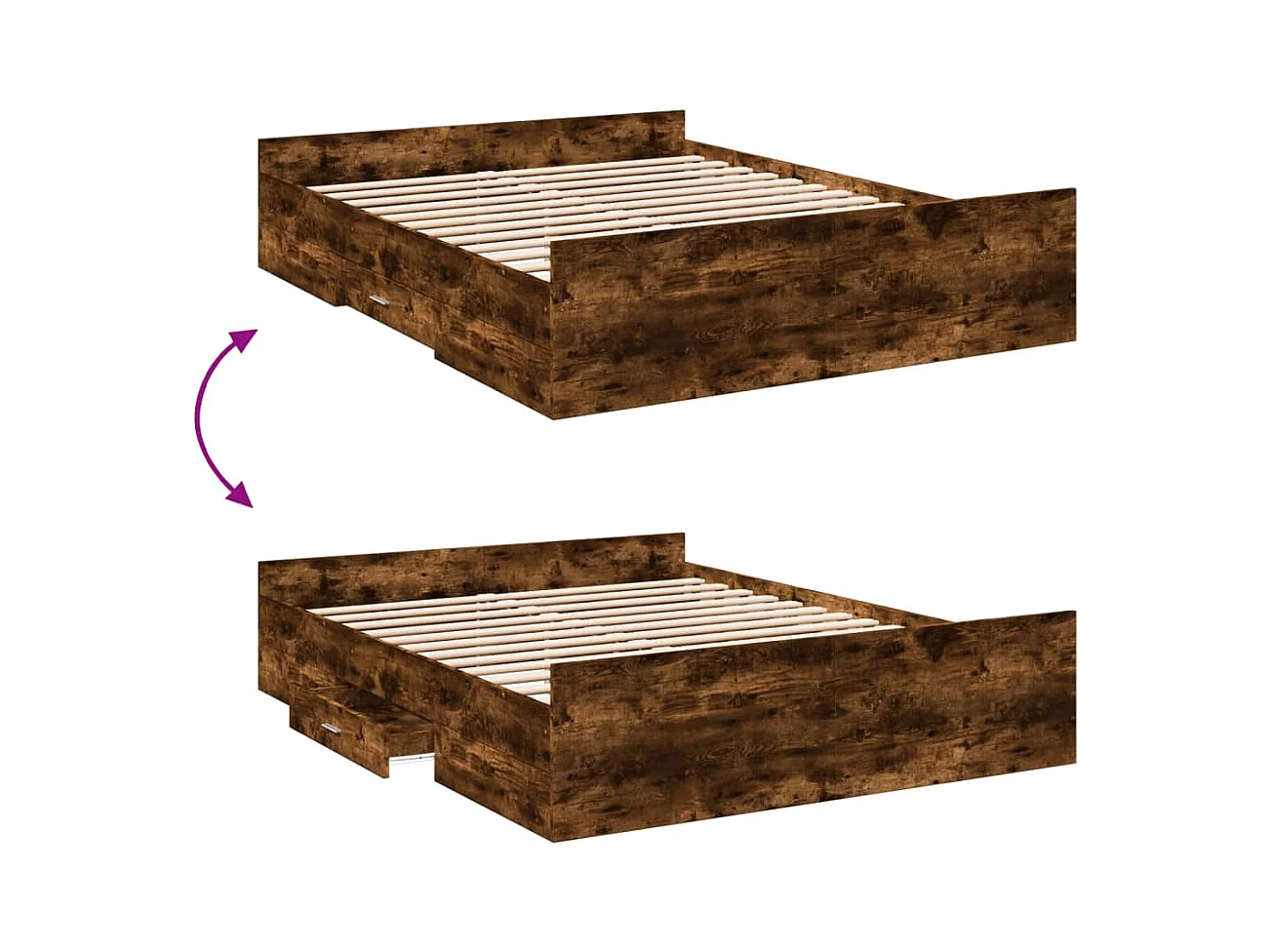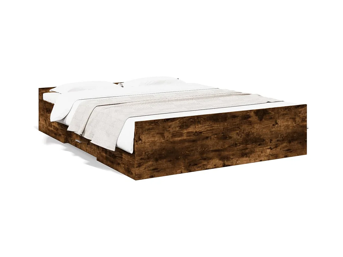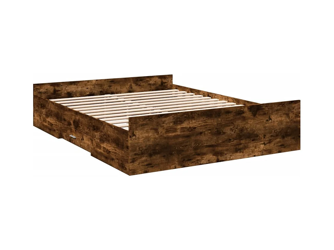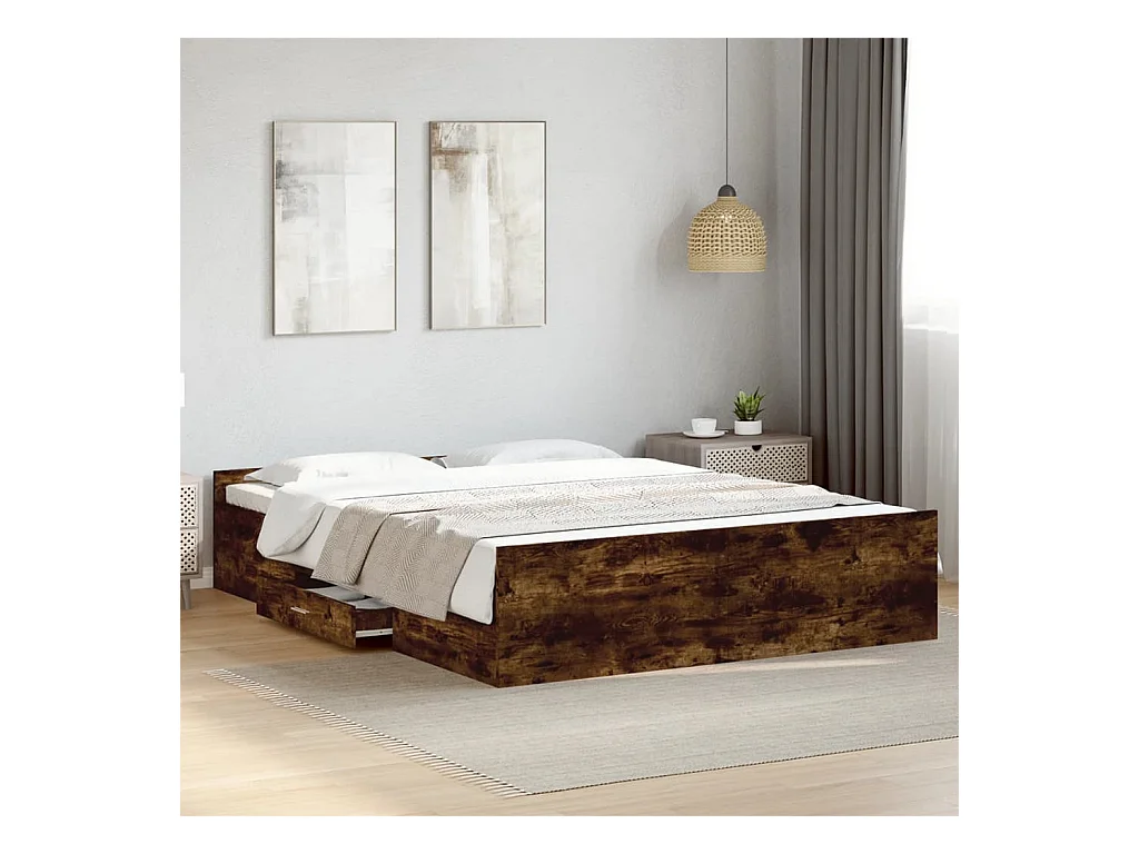 Cadre de lit à tiroirs chêne fumé 160x200 bois d'ingénierie
