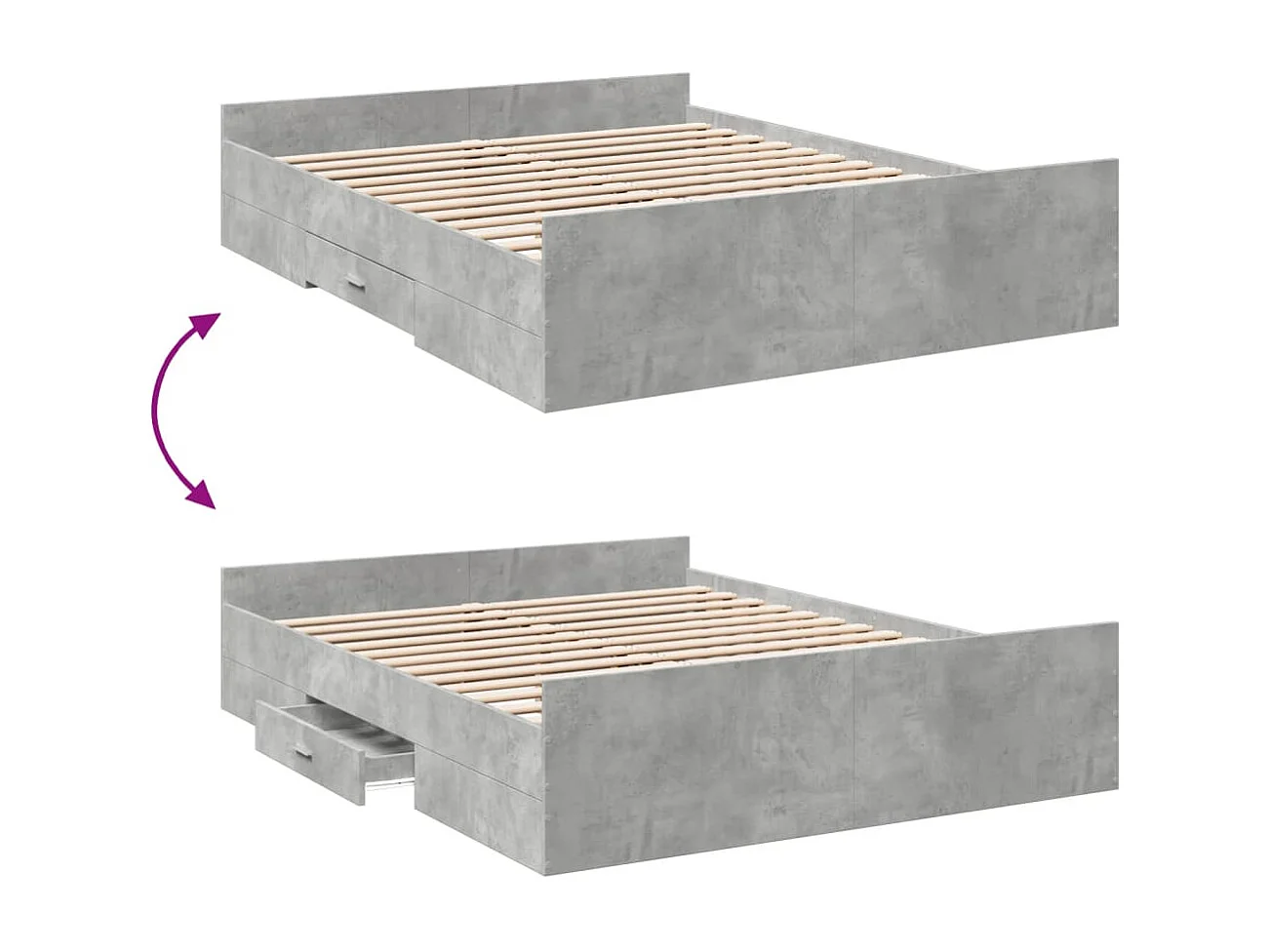 Cadre de lit à tiroirs gris béton 150x200 cm bois d'ingénierie
