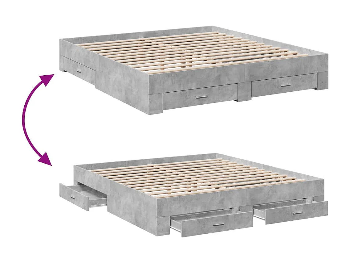 Cadre de lit à tiroirs gris béton 180x200 bois d'ingénierie