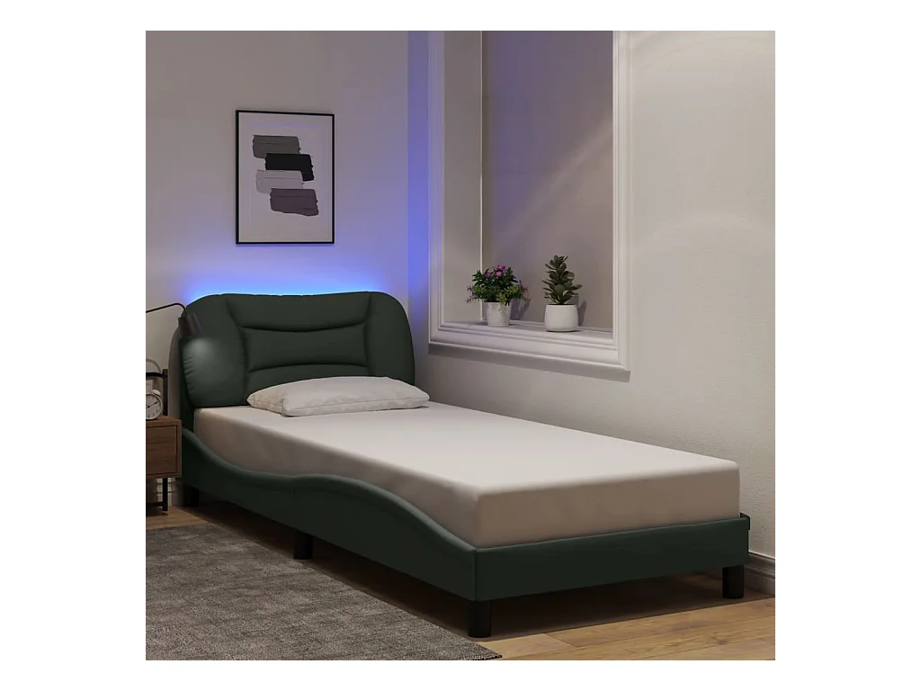 Cadre de lit avec LED sans matelas gris foncé 90x190 cm tissu