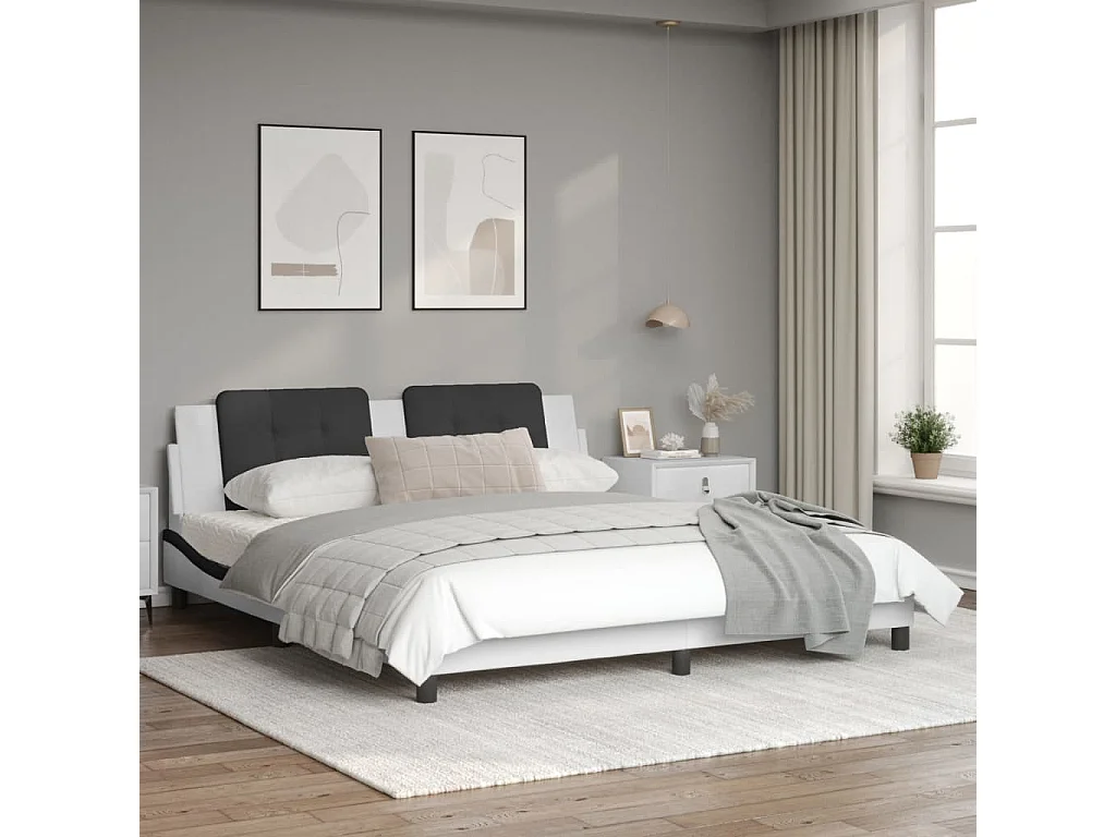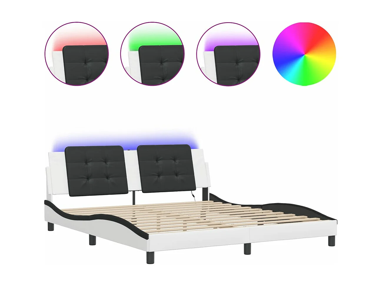 Cadre de lit avec lumières LED blanc noir 180x200 similicuir