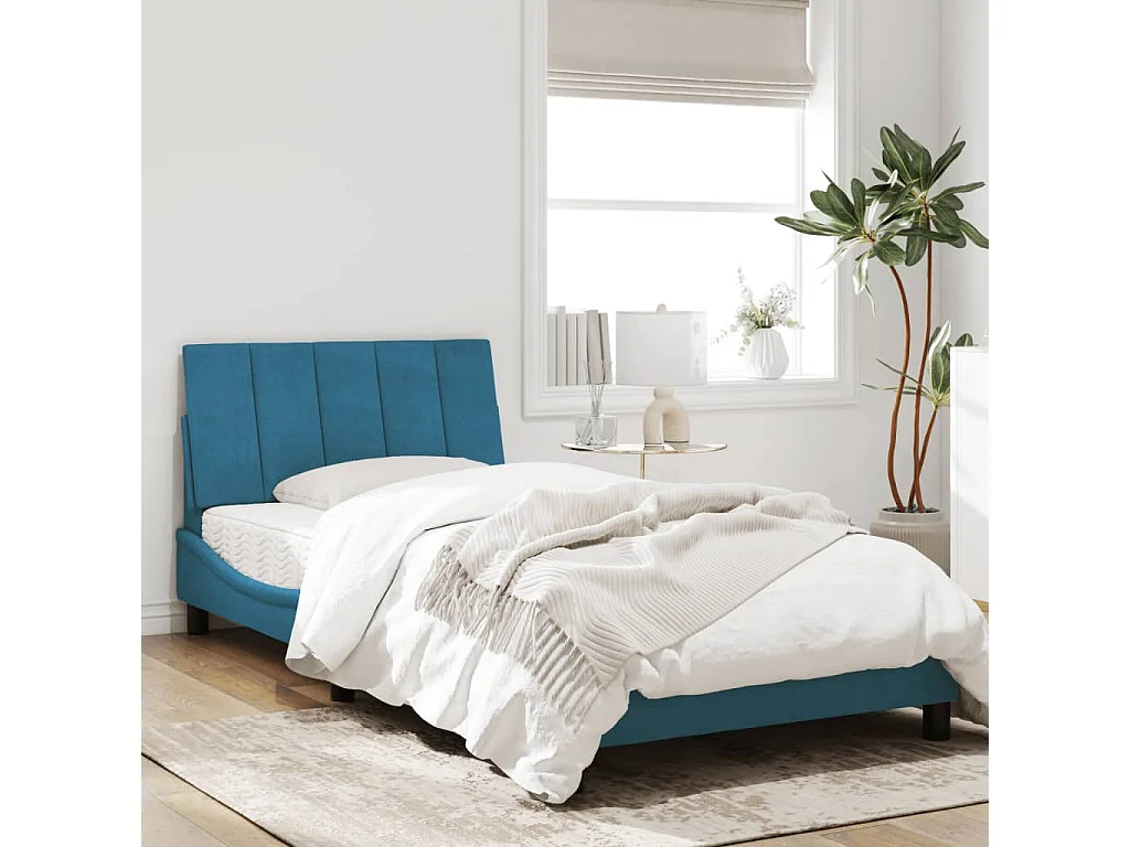 Cadre de lit avec lumières LED bleu 100x200 velours