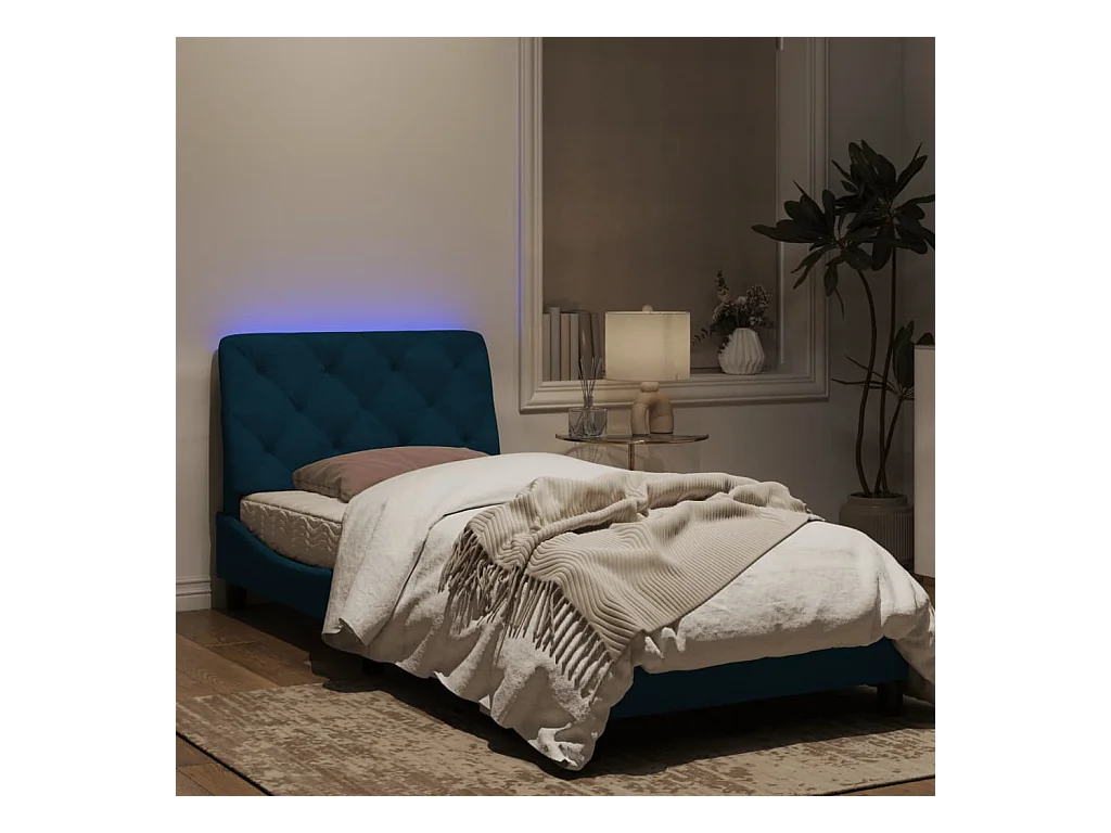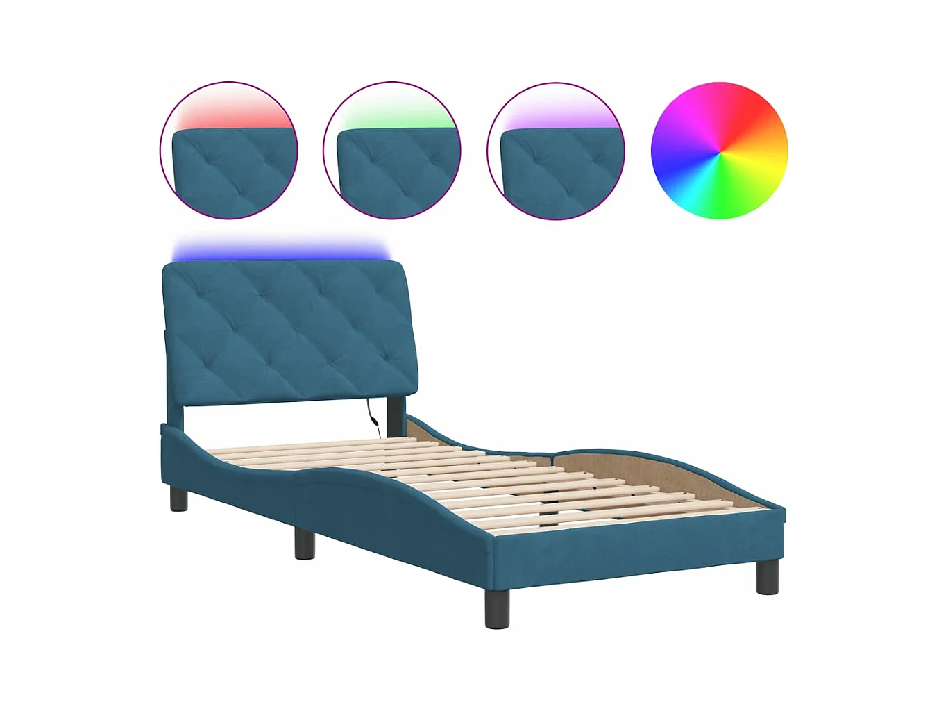 Cadre de lit avec lumières LED bleu 90x200 velours