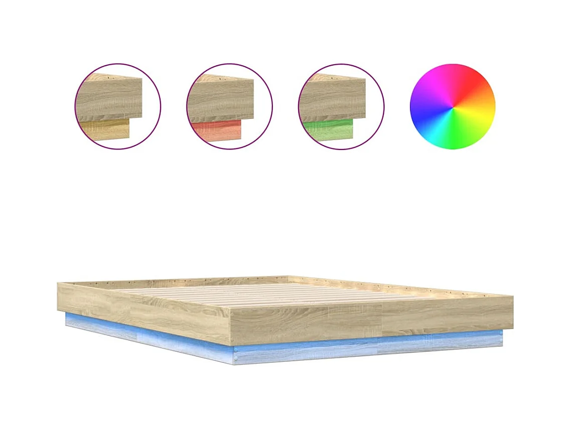 Cadre de lit avec lumières LED chêne sonoma 120x200