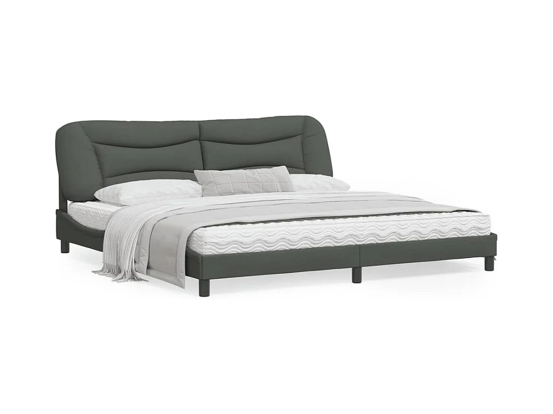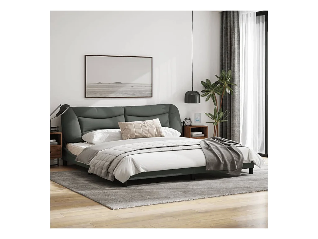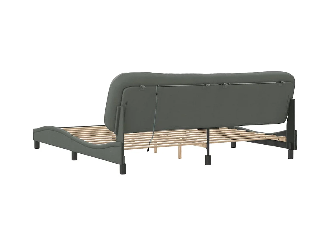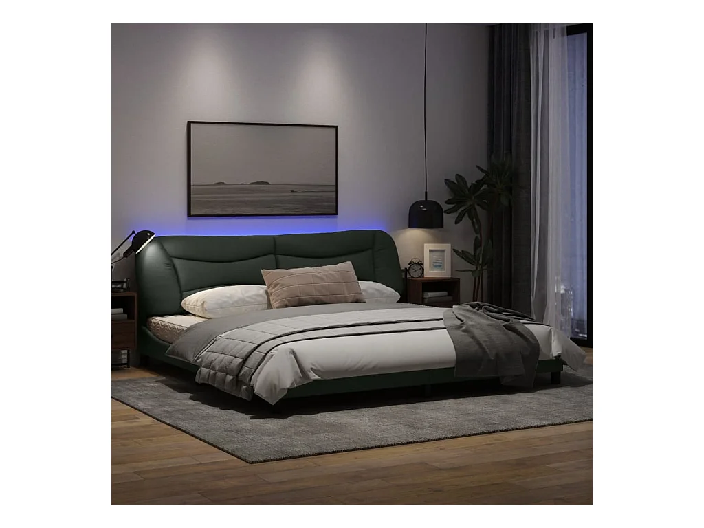 Cadre de lit avec lumières LED gris foncé 200x200 tissu